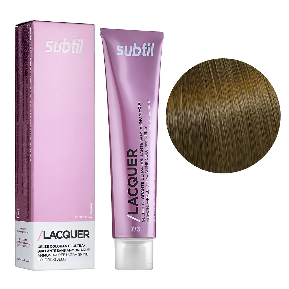 Subtil Lacquer - це фарба для волосся, створена без використання аміаку, на основі гілауроновой кислоти, рослинного кератину і EPOLINE - запатентованої формули (кукурудзяна олія + кисень). З цією фарбою тепер ви можете забути про процедуру відновлення кератину - фарбування і насичення волосся кератином відбувається одночасно і всього за 20 хвилин. Формула Lacquer містить також компоненти, що захищають шкіру, це робить фарбу доступною для застосування при дуже чутливій шкірі голови. Особливості продукту: 7/3 блондин золотистий Безаміачна тонувальна гелева фарба на кислотній основі, 60 мл LACQUER SUBTIL Застосування: 7/3 блондин золотистий Безаміачна тонувальна гелева фарба на кислотній основі, 60 мл LACQUER SUBTIL Час витримки: 7/3 блондин золотистий Безаміачна тонувальна гелева фарба на кислотній основі, 60 мл LACQUER SUBTIL Витримати на волоссі 20 хвилин після нанесення на коріння. Застосовувати фарбу слід, суворо дотримуючись інструкції, яка додається до кожної упаковки.Безаміачна тонувальна гелева фарба на кислотній основі LACQUER SUBTIL