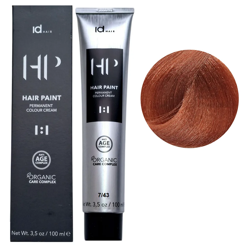Фарба для волосся Hair Paint OCC ID Hair – це професійні фарбники для волосся з безліччю чудових, м’яких відтінків, які оптимально підходять для всіх типів волосся. Тепер демі-, семі- та перманентне фарбування доступно завдяки лише одному продукту. Фарба містить до 70% менше аміаку порівняно з іншими системами фарбування, що мінімізує ризик подразнення шкіри голови. Низький вміст аміаку у фарбі дозволяє легко використовувати фарбу для волосся з чутливою шкірою голови. Фарба включає комплекс органічного догляду (Organic Care Complex-OCC), що складається з трьох інгредієнтів: Технологія Anti-Ageing Complex не лише подовжує стійкість кольору, але й допомагає боротися з ознаками старіння волосся, гарантуючи, що волосся ваших клієнтів залишатиметься молодим та повним життя. Особливості продукту: 7/43 Крем-фарба для волосся перманентна,100мл HAIR PAINT Permanent Colour Cream OCC Id HAIR Застосування: 7/43 Крем-фарба для волосся перманентна,100мл HAIR PAINT Permanent Colour Cream OCC Id HAIR Змішати в неметалевому посуді крем-фарбу Hair Paint OCC ID Hair із окислювальною емульсією HP BOOSTER ID Hair у пропорції 1 : 1. При інтенсивному освітленні збільшити порцію HP BOOSTER ID Hair вдвічі (1 : 2). Вибір концентрації окислювача 1,5%, 3%, 6%, 9% або 12% залежить від бажаного рівня освітлення. Час витримки: від 30 хвилин. Продукт призначений для професійного використання. Уважно ознайомтесь з інструкцією.Крем-фарба для волосся перманентна HAIR PAINT Permanent Colour Cream OCC Id HAIR