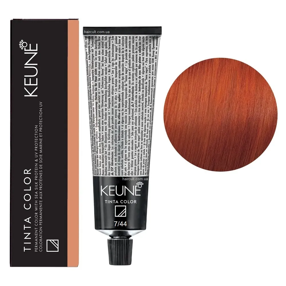 Tinta Color Keune - це преміальна перманентна крем-фарба, яка забезпечує 100% покриття сивини, інтенсивний колір та ефект догляду після кожного фарбування. Унікальна формула з протеїнами шовку глибоко кондиціонує волосся, зберігає його м’якість і блиск. Завдяки вмісту бджолиного воску, фарба не тече та рівномірно розподіляється по всій довжині. Фарба доступна в широкій палітрі - від природних тонів до виразних і насичених кольорів. Підходить для будь-якого типу волосся - як натурального, так і фарбованого. Спеціальні серії Tinta Color: Переваги фарби Keune Tinta Color: 7/44 Середній блондин мідний інтенсивний Фарба перманентна для волосся, 60 мл Permanent Color TINTA COLOR KEUNE Застосування: 7/44 Середній блондин мідний інтенсивний Фарба перманентна для волосся, 60 мл Permanent Color TINTA COLOR KEUNE Змішайте з окислювачем Cream Developer TINTA KEUNE у пропорції 1:1. Важливо! Продукт для професійного використання. Уважно ознайомтесь з офіційною інструкцією.Фарба перманентна для волосся Permanent Color Sea Silk Protein TINTA COLOR KEUNE