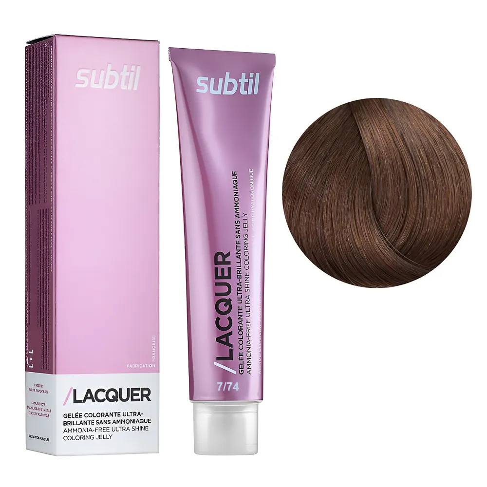 Subtil Lacquer - це фарба для волосся, створена без використання аміаку, на основі гілауроновой кислоти, рослинного кератину і EPOLINE - запатентованої формули (кукурудзяна олія + кисень). З цією фарбою тепер ви можете забути про процедуру відновлення кератину - фарбування і насичення волосся кератином відбувається одночасно і всього за 20 хвилин. Формула Lacquer містить також компоненти, що захищають шкіру, це робить фарбу доступною для застосування при дуже чутливій шкірі голови. Особливості продукту: 7/74 блондин коричнево-мідний Безаміачна тонувальна гелева фарба на кислотній основі, 60 мл LACQUER SUBTIL Застосування: 7/74 блондин коричнево-мідний Безаміачна тонувальна гелева фарба на кислотній основі, 60 мл LACQUER SUBTIL Час витримки: 7/74 блондин коричнево-мідний Безаміачна тонувальна гелева фарба на кислотній основі, 60 мл LACQUER SUBTIL Витримати на волоссі 20 хвилин після нанесення на коріння. Застосовувати фарбу слід, суворо дотримуючись інструкції, яка додається до кожної упаковки.Безаміачна тонувальна гелева фарба на кислотній основі LACQUER SUBTIL