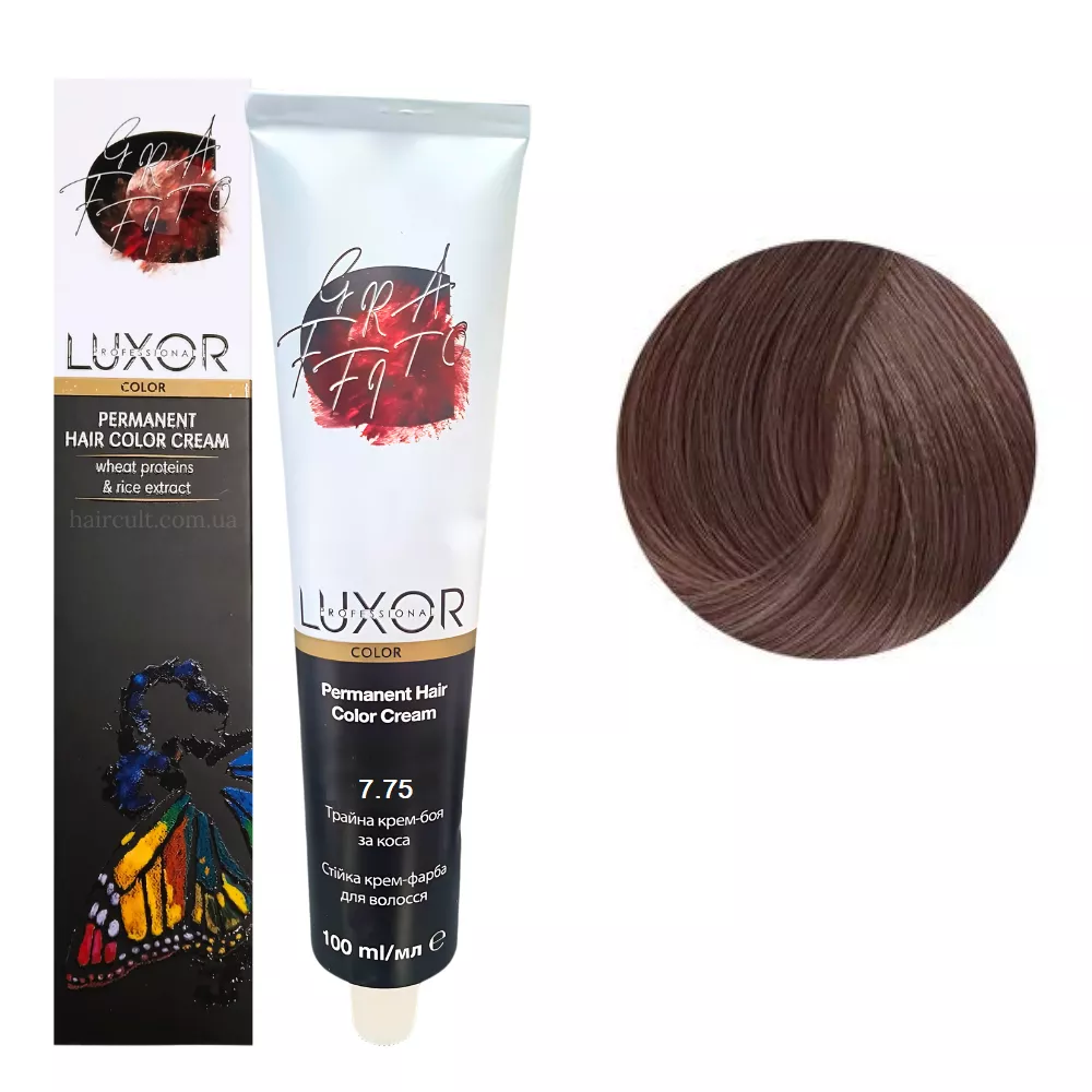Особливості продукту: 7/75 Блондин шоколадний махагоновий Стійка крем-фарба для волосся, 100мл Permanent Hair Color Cream LUXOR Professional Складається з TriplexSystem COLOR - інноваційної системи, що включає в себе три агента фарбування волосся для найкращого результату: Застосування: 7/75 Блондин шоколадний махагоновий Стійка крем-фарба для волосся, 100мл Permanent Hair Color Cream LUXOR Professional У ємності змішайте фарбник, поживний флюїд і оксидант, нанесіть на волосся і залиште на необхідний час, змийте теплою водою. Перед використанням уважно ознайомтесь з інструкцією!Крем-фарба для волосся перманентна Permanent Hair Color Cream LUXOR Professional