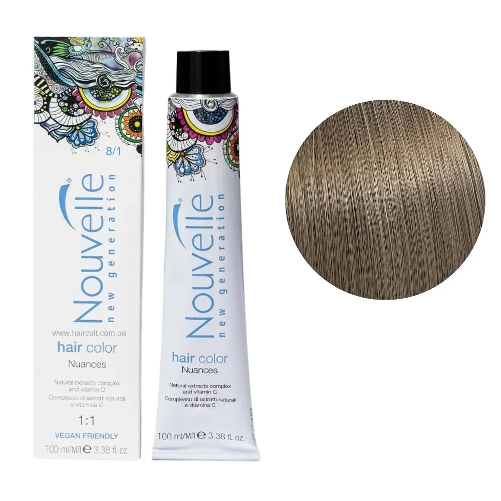 Nouvelle New Generation Hair Color - це стійка аміачна крем-фарба для волосся, яка забезпечує насичений, тривалий колір і професійний результат. Продукт пропонує широку палітру, що включає натуральні, яскраві, модні та ультрасвітлі тони. Особливості продукту: 8/1 світло-попелястий русявий Фарба для волосся перманентна, 100мл Permanent Hair Color Nouvelle Застосування: 8/1 світло-попелястий русявий Фарба для волосся перманентна, 100мл Permanent Hair Color Nouvelle Фарбу змішують із окислювачем Nouvelle Developer Cream Peroxide (1,5%, 3%, 6%, 9% або 12%) у відповідних пропорціях залежно від бажаного ефекту: тонування, освітлення чи зафарбовування сивини. Суміш наноситься на сухе, немите волосся із витримкою 25-50 хвилин, залежно від інтенсивності кольору. Після фарбування рекомендується використовувати шампунь і доглядові засоби з серії Nouvelle Color Glow для збереження кольору і здоров’я волосся.Фарба для волосся перманентна Permanent Hair Color Nouvelle