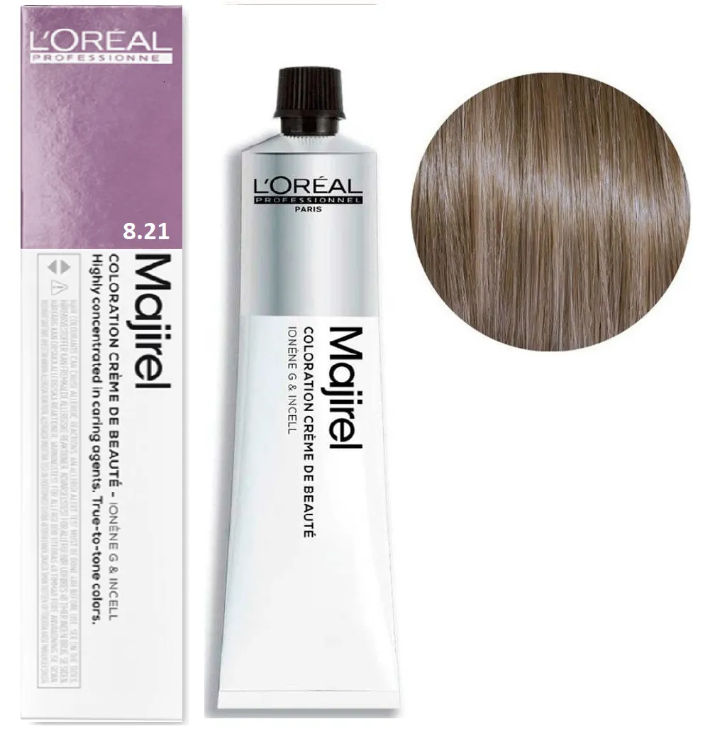 Majirel від L’Oreal Professionnel - це професійна стійка крем-фарба, створена для майстрів, які цінують точність, передбачуваність і розкішний результат фарбування. Формула розроблена з урахуванням останніх досягнень у сфері колористики, щоб забезпечити насичений колір, ідеальне покриття сивини та неперевершений блиск. Завдяки технології Ionene G™ та Incell™ волосся зберігає здорову структуру навіть після інтенсивного фарбування. Активні компоненти проникають у глибину волокна, зміцнюють кутикулу та підвищують стійкість кольору. Результат - шовковисті пасма з глибоким, багатовимірним відтінком. Особливості продукту: 8/21 Світлий блондин фіолетово-попелястий Фарба для волосся стійка, 60 мл Majirel L`Oreal Professionnel (оновлений формат) Застосування: 8/21 Світлий блондин фіолетово-попелястий Фарба для волосся стійка, 60 мл Majirel L`Oreal Professionnel (оновлений формат) Пропорції змішування з окислювачем: Час витримки залежить від обраної фарби та бажаного результату фарбування. Фарба Majirel від L’Oreal Professionnel призначена для професійного використання! Уважно ознайомтесь з інструкцією.Фарба для волосся стійка Majirel L`Oreal Professionnel (оновлений формат - 60 мл)