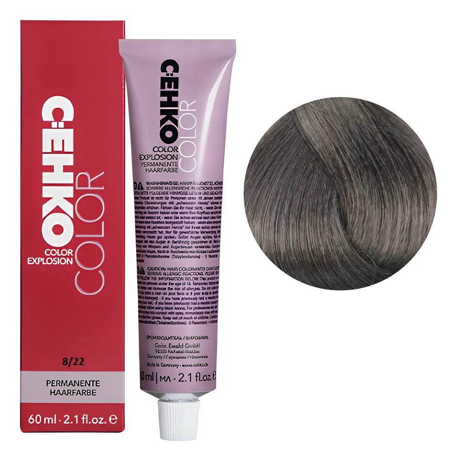 8/22 Світлий блондин попелястий інтенсивний Стійка перманентна крем-фарба для волосся, 60 мл Permament Hair Color EXPLOSION C:EHKO