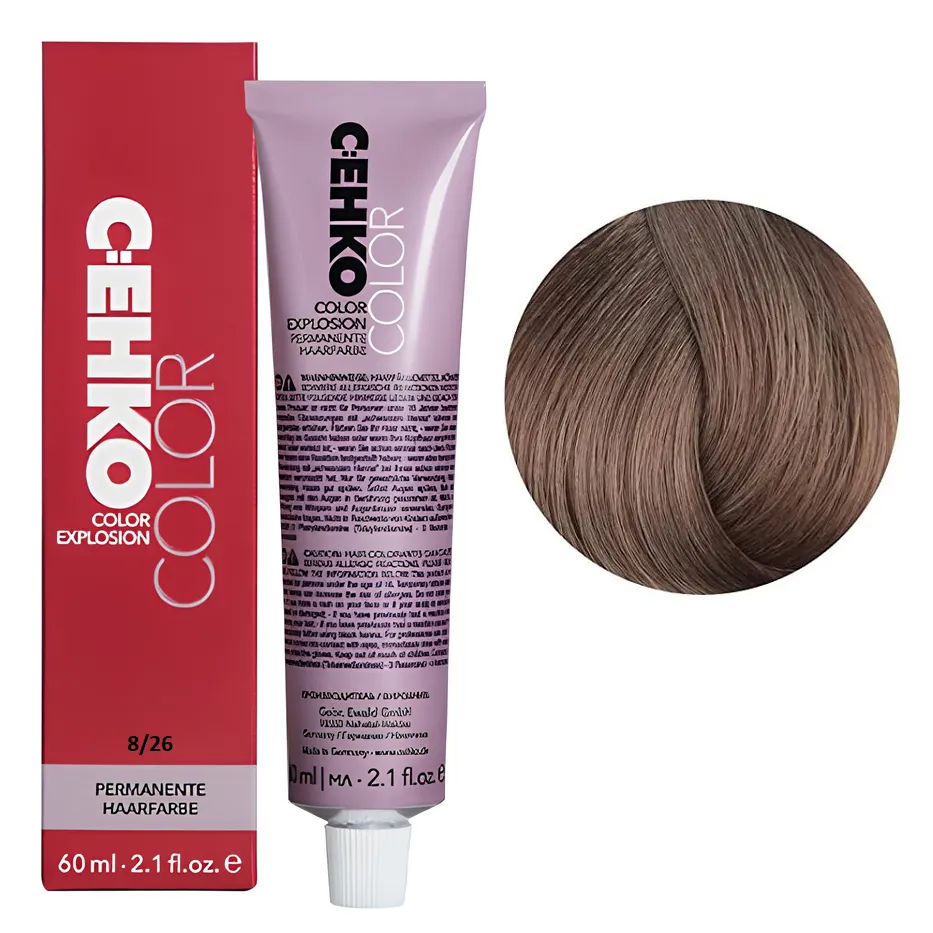 8/26 Світлий блондин попелясто-махагоновий Стійка перманентна крем-фарба для волосся, 60 мл Permament Hair Color EXPLOSION C:EHKO