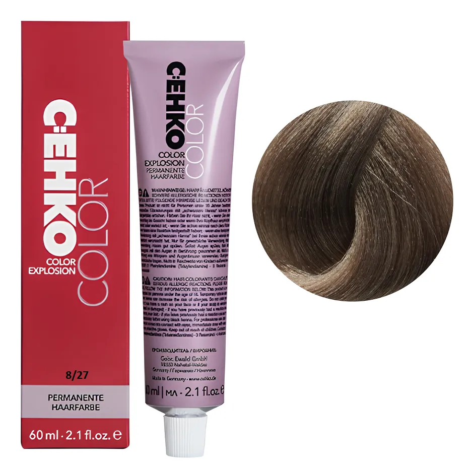 8/27 Світлий блондин попелясто-коричневий Стійка перманентна крем-фарба для волосся, 60 мл Permament Hair Color EXPLOSION C:EHKO