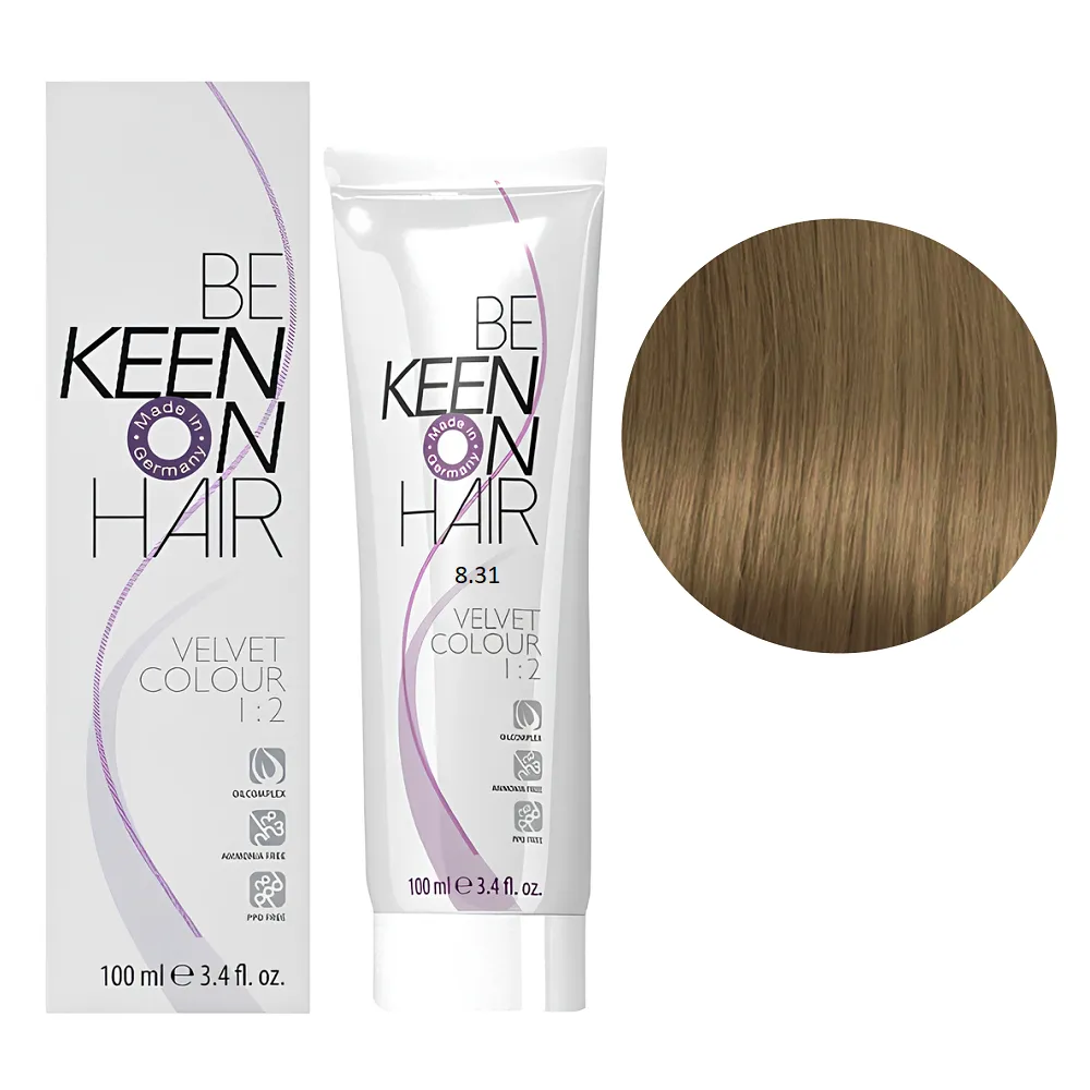 Перманентна крем-фарба VELVET COLOUR призначена для тонування та для делікатного фарбування. Забезпечує 90% зафарбовування сивини і має чудову стійкість. Стійкість до 40 разів миття. Особливості продукту: 8/31 золотисто-попілястий блондин Перманентна крем-фарба без аміаку, 100 мл VELVET COLOUR KEEN Активні компоненти: 8/31 золотисто-попілястий блондин Перманентна крем-фарба без аміаку, 100 мл VELVET COLOUR KEEN Застосування: 8/31 золотисто-попілястий блондин Перманентна крем-фарба без аміаку, 100 мл VELVET COLOUR KEEN Час витримки: 20-30 хвилин. Продукт призначений для професійного використання. Уважно ознайомтесь з інструкцією.Перманентна крем-фарба без аміаку VELVET COLOUR KEEN
