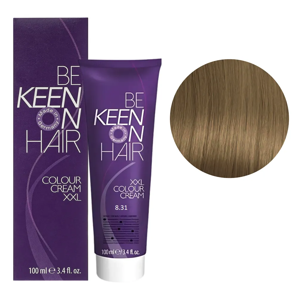 Краще співвідношення ціни та якості! Colour Cream XXL KEEN фарба німецького виробника завоювала визнання професійних майстрів і покупців по всій Європі. Палітра налічує понад 116 відтінків для креативної комбінації кольорів. Всі тони поєднуються між собою, їх можна змішувати, створюючи свій неповторний стиль. Кремоподібна текстура фарби легко наноситься, не тече і забезпечує рівномірний результат. Особливості продукту: 8/31 світлий блондин золотисто-попелястий Стійка крем-фарба для волосся, 100 мл Colour Cream XXL KEEN Активні компоненти: гідролізовані молочні протеїни піклуються про волосся під час фарбування зберігають необхідну вологість, надає волоссю блиску та пружності. Застосування: 8/31 світлий блондин золотисто-попелястий Стійка крем-фарба для волосся, 100 мл Colour Cream XXL KEEN Змішати в неметалевому посуді крем-фарбу Colour Cream XXL KEEN із крем-окислювачем. Фарбуючу суміш наносити на сухе чисте волосся. Вибір концентрації крем-окислювача 1,9%, 3%, 6%, 9% або 12% залежить від бажаного рівня освітлення. При використанні додаткового джерела тепла час витримки зменшується вдвічі. Пропорції змішування: 8/31 світлий блондин золотисто-попелястий Стійка крем-фарба для волосся, 100 мл Colour Cream XXL KEEN Час витримки: 35 хвилин. Продукт призначений для професійного використання. Уважно ознайомтесь з інструкцією.Стійка крем-фарба для волосся Colour Cream XXL KEEN