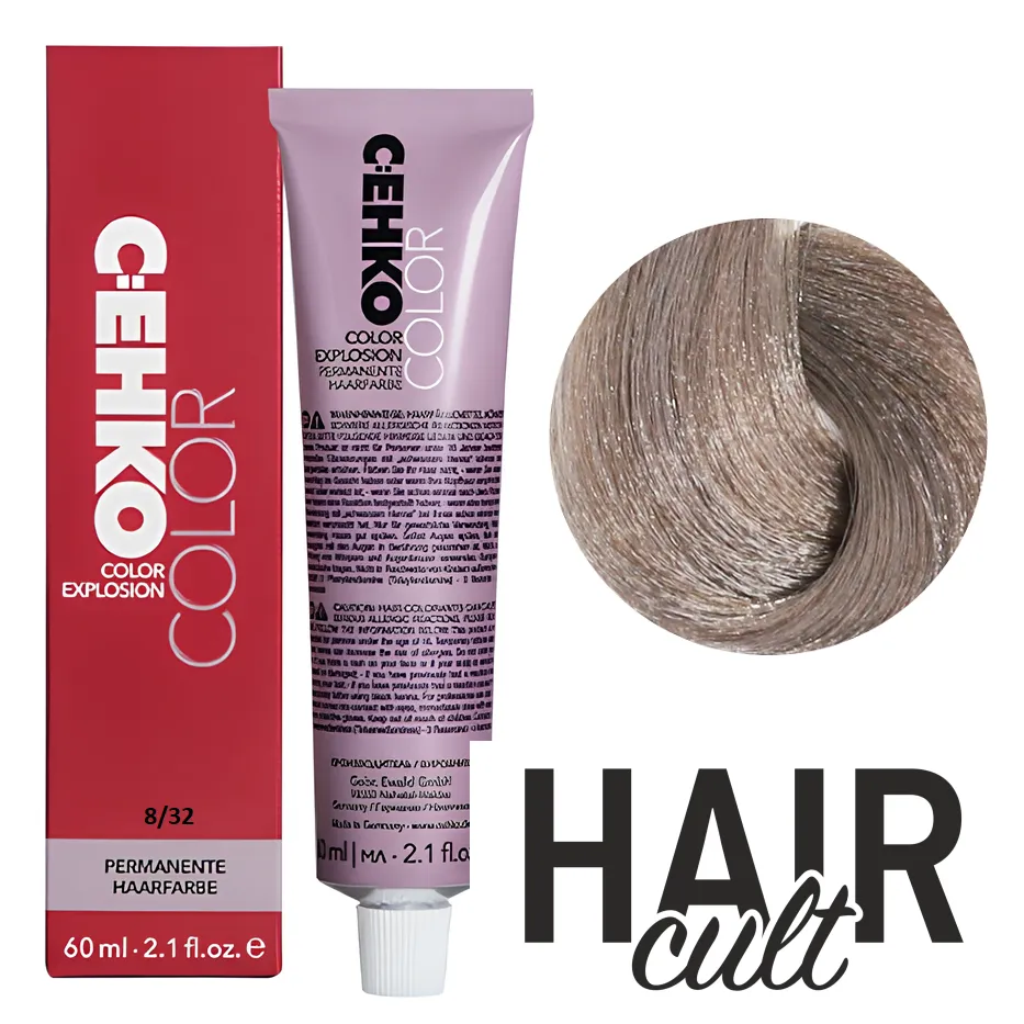 8/32 Світлий блондин золотисто-попелястий Стійка перманентна крем-фарба для волосся, 60 мл Permament Hair Color EXPLOSION C:EHKO