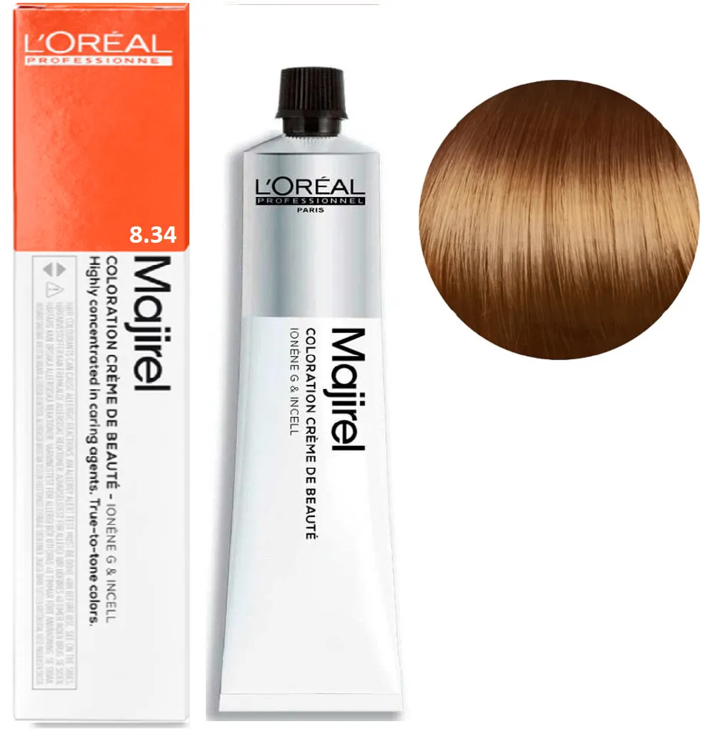Majirel від L’Oreal Professionnel - це професійна стійка крем-фарба, створена для майстрів, які цінують точність, передбачуваність і розкішний результат фарбування. Формула розроблена з урахуванням останніх досягнень у сфері колористики, щоб забезпечити насичений колір, ідеальне покриття сивини та неперевершений блиск. Завдяки технології Ionene G™ та Incell™ волосся зберігає здорову структуру навіть після інтенсивного фарбування. Активні компоненти проникають у глибину волокна, зміцнюють кутикулу та підвищують стійкість кольору. Результат - шовковисті пасма з глибоким, багатовимірним відтінком. Особливості продукту: 8/34 Світлий блондин золотисто-мідний Фарба для волосся стійка, 60 мл Majirel L`Oreal Professionnel (оновлений формат) Застосування: 8/34 Світлий блондин золотисто-мідний Фарба для волосся стійка, 60 мл Majirel L`Oreal Professionnel (оновлений формат) Пропорції змішування з окислювачем: Час витримки залежить від обраної фарби та бажаного результату фарбування. Фарба Majirel від L’Oreal Professionnel призначена для професійного використання! Уважно ознайомтесь з інструкцією.Фарба для волосся стійка Majirel L`Oreal Professionnel (оновлений формат - 60 мл)