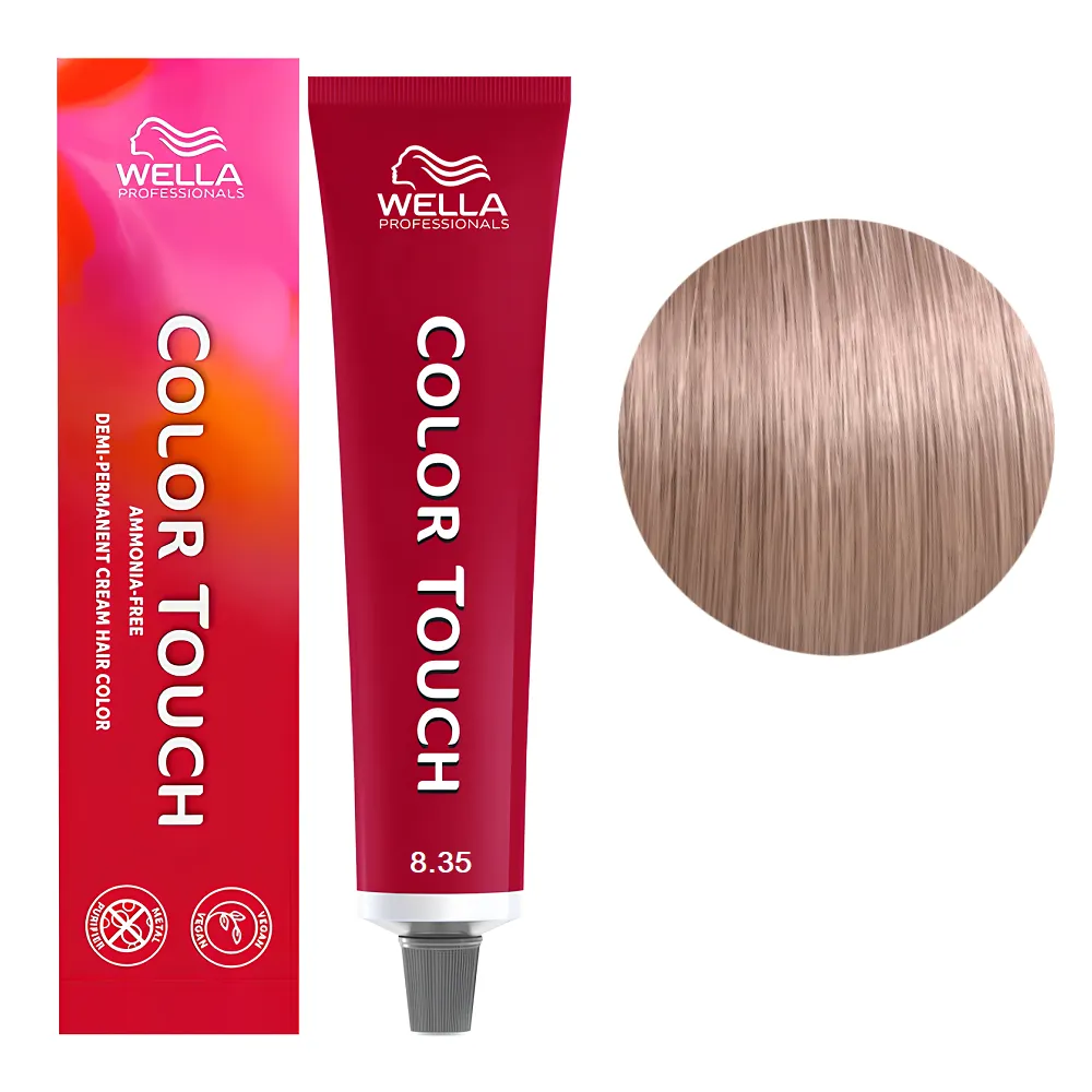 Особливості продукту8/35 світлий блондин золотисто-рожевий Фарба для тонування волосся без аміаку (Оновлена формула), 60 мл COLOR TOUCH Wella Professionals