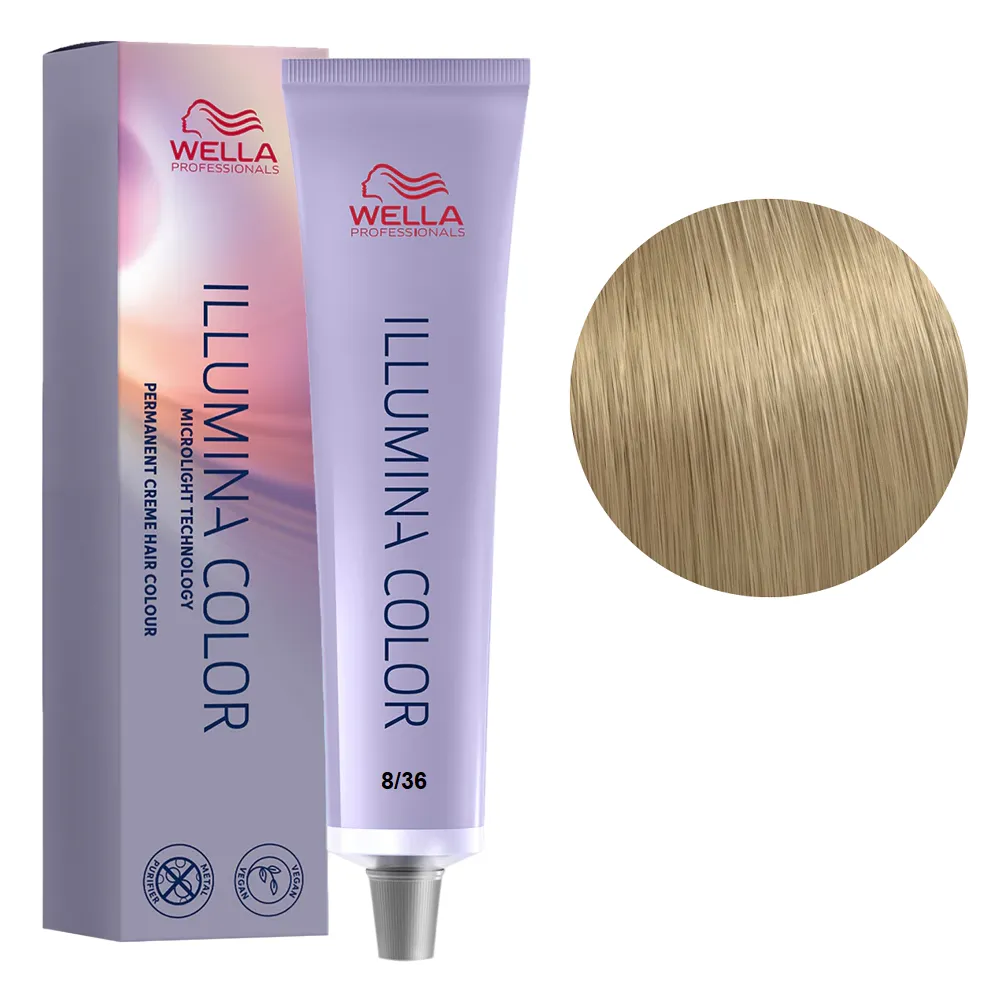 Формула фарби ILLUMINA COLOR заснована на запатентованій технології MICROLIGHT, яка захищає кутикулу волосся та не перевантажує його. Дана технологія обволікає мідні частки на поверхні кутикули, що перешкоджає їх взаємодії з фарбувальної сумішшю і підвищує тим самим захист лускатого шару. Це дозволяє променям світла вільно проникати всередину волосся та надає природним переливам кольору неймовірного сяйва, яке помітно при будь-якому освітленні. Всі тони поєднуються між собою, їх можна змішувати та створювати свій неповторний стиль. Фарба чудово підходить для першого досвіду для клієнтів, які бояться фарбування волосся. Особливості продукту: 8/36 світлий блондин золотисто-фіолетовий Стійка крем-фарба для волосся, 60 мл ILLUMINA COLOR Wella Professionals Застосування: 8/36 світлий блондин золотисто-фіолетовий Стійка крем-фарба для волосся, 60 мл ILLUMINA COLOR Wella Professionals Змішати в неметалевому посуді крем-фарбу ILLUMINA COLOR Wella Professionals із оксидантом WELLOXON PERFECT Wella Professionals у пропорції 1:1 (60 мл фарби + 60 мл оксиданту). Фарбуючу суміш наносити на сухе волосся. Час витримки: до 40 хвилин (до 25 хвилин з підігрівом) Продукт призначений для професійного використання. Уважно ознайомтесь з інструкцією.Стійка крем-фарба для волосся, 60 мл ILLUMINA COLOR Wella Professionals