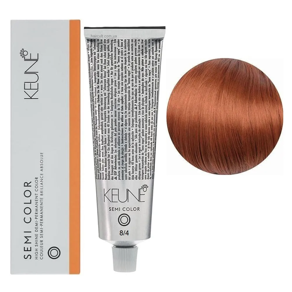 Keune Semi Color - це інноваційна безаміачна крем-фарба для волосся, створена на основі технології Silsoft, що забезпечує стійкий результат без шкоди для структури волосся. Засіб ідеально підходить для тонування, освіження кольору та фарбування до 70% сивини. Формула нового покоління містить активні компоненти, які м’яко відновлюють природний відтінок, роблять волосся гладким, м’яким і еластичним. Завдяки нейтральному pH та відсутності аміаку, фарба підходить навіть для чутливої шкіри голови та волосся після хімічних процедур. Особливості продукту: 8/4 Світлий блондин мідний Фарба для тонування волосся без аміаку, 60 мл Demi-Permanent Color SЕМІ COLOR KEUNE Застосування: 8/4 Світлий блондин мідний Фарба для тонування волосся без аміаку, 60 мл Demi-Permanent Color SЕМІ COLOR KEUNE Фарбу Keune Semi Color слід змішати з Activator Semi Color (2.25%) або Activator Intense Semi Color (3%) у співвідношенні 1:2. Час витримки 20 хвилин. Продукт для професійного використання. Уважно ознайомтесь з офіційною інструкцією.Фарба для тонування волосся без аміаку Demi-Permanent Color SЕМІ COLOR KEUNE