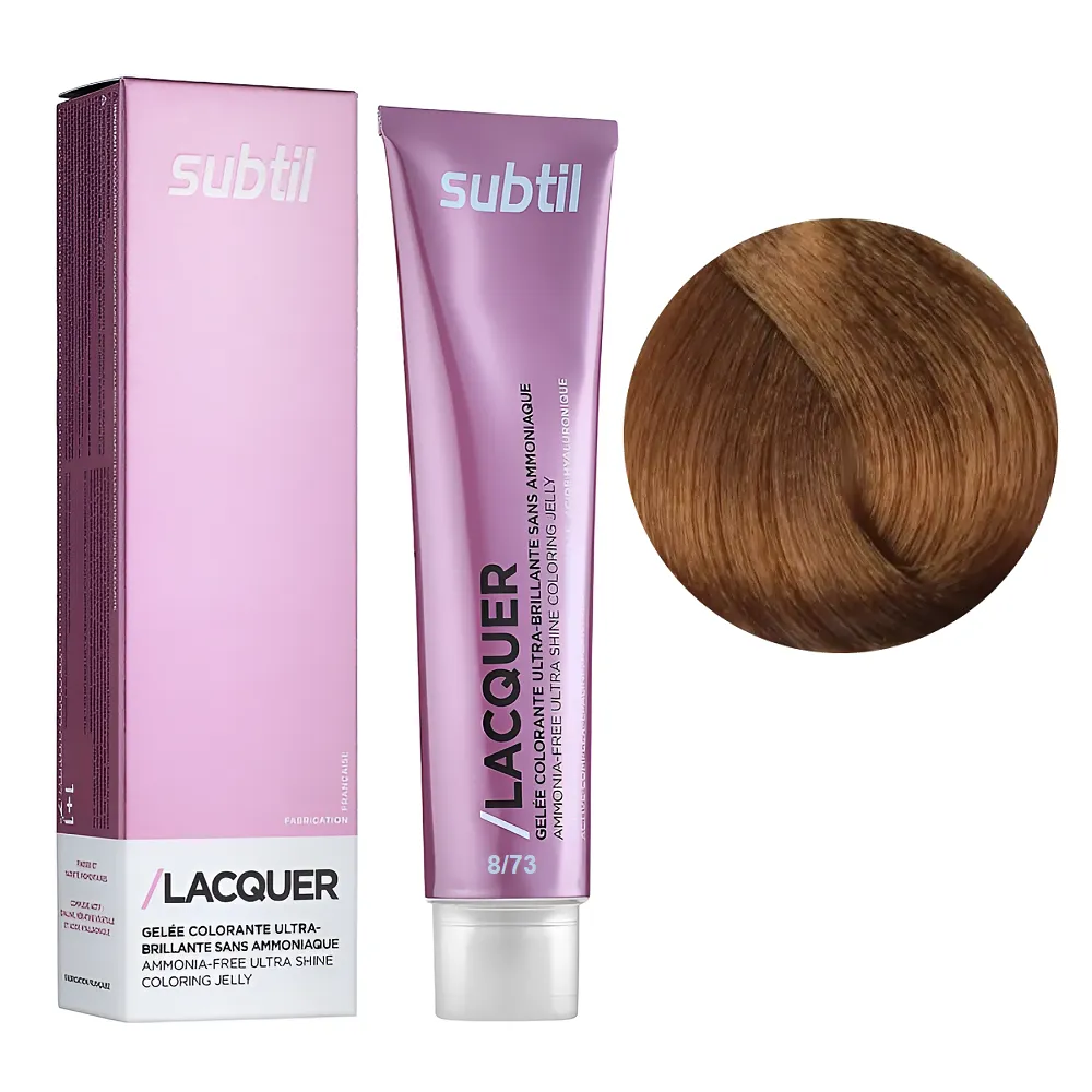 Subtil Lacquer - це фарба для волосся, створена без використання аміаку, на основі гілауроновой кислоти, рослинного кератину і EPOLINE - запатентованої формули (кукурудзяна олія + кисень). З цією фарбою тепер ви можете забути про процедуру відновлення кератину - фарбування і насичення волосся кератином відбувається одночасно і всього за 20 хвилин. Формула Lacquer містить також компоненти, що захищають шкіру, це робить фарбу доступною для застосування при дуже чутливій шкірі голови. Особливості продукту: 8/73 світлий блондин коричнево-золотистий Безаміачна тонувальна гелева фарба на кислотній основі, 60 мл LACQUER SUBTIL Застосування: 8/73 світлий блондин коричнево-золотистий Безаміачна тонувальна гелева фарба на кислотній основі, 60 мл LACQUER SUBTIL Час витримки: 8/73 світлий блондин коричнево-золотистий Безаміачна тонувальна гелева фарба на кислотній основі, 60 мл LACQUER SUBTIL Витримати на волоссі 20 хвилин після нанесення на коріння. Застосовувати фарбу слід, суворо дотримуючись інструкції, яка додається до кожної упаковки.Безаміачна тонувальна гелева фарба на кислотній основі LACQUER SUBTIL