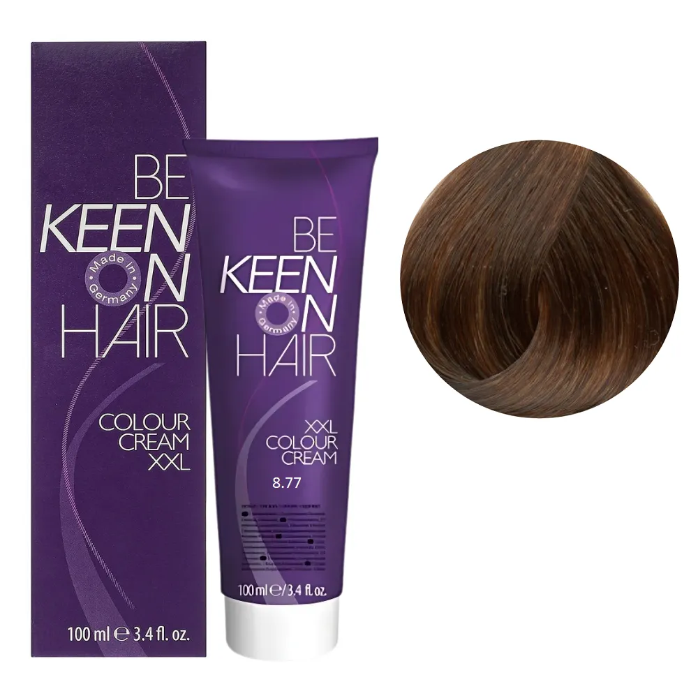 Краще співвідношення ціни та якості! Colour Cream XXL KEEN фарба німецького виробника завоювала визнання професійних майстрів і покупців по всій Європі. Палітра налічує понад 116 відтінків для креативної комбінації кольорів. Всі тони поєднуються між собою, їх можна змішувати, створюючи свій неповторний стиль. Кремоподібна текстура фарби легко наноситься, не тече і забезпечує рівномірний результат. Особливості продукту: 8/77 світлий блондин каштановий інтенсивний Стійка крем-фарба для волосся, 100 мл Colour Cream XXL KEEN Активні компоненти: гідролізовані молочні протеїни піклуються про волосся під час фарбування зберігають необхідну вологість, надає волоссю блиску та пружності. Застосування: 8/77 світлий блондин каштановий інтенсивний Стійка крем-фарба для волосся, 100 мл Colour Cream XXL KEEN Змішати в неметалевому посуді крем-фарбу Colour Cream XXL KEEN із крем-окислювачем. Фарбуючу суміш наносити на сухе чисте волосся. Вибір концентрації крем-окислювача 1,9%, 3%, 6%, 9% або 12% залежить від бажаного рівня освітлення. При використанні додаткового джерела тепла час витримки зменшується вдвічі. Пропорції змішування: 8/77 світлий блондин каштановий інтенсивний Стійка крем-фарба для волосся, 100 мл Colour Cream XXL KEEN Час витримки: 35 хвилин. Продукт призначений для професійного використання. Уважно ознайомтесь з інструкцією.Стійка крем-фарба для волосся Colour Cream XXL KEEN