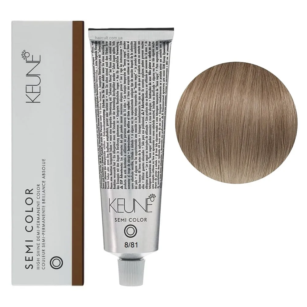 Keune Semi Color - це інноваційна безаміачна крем-фарба для волосся, створена на основі технології Silsoft, що забезпечує стійкий результат без шкоди для структури волосся. Засіб ідеально підходить для тонування, освіження кольору та фарбування до 70% сивини. Формула нового покоління містить активні компоненти, які м’яко відновлюють природний відтінок, роблять волосся гладким, м’яким і еластичним. Завдяки нейтральному pH та відсутності аміаку, фарба підходить навіть для чутливої шкіри голови та волосся після хімічних процедур. Особливості продукту: 8/81 Світлий блондин мока-попелястий Фарба для тонування волосся без аміаку, 60 мл Demi-Permanent Color SЕМІ COLOR KEUNE Застосування: 8/81 Світлий блондин мока-попелястий Фарба для тонування волосся без аміаку, 60 мл Demi-Permanent Color SЕМІ COLOR KEUNE Фарбу Keune Semi Color слід змішати з Activator Semi Color (2.25%) або Activator Intense Semi Color (3%) у співвідношенні 1:2. Час витримки 20 хвилин. Продукт для професійного використання. Уважно ознайомтесь з офіційною інструкцією.Фарба для тонування волосся без аміаку Demi-Permanent Color SЕМІ COLOR KEUNE