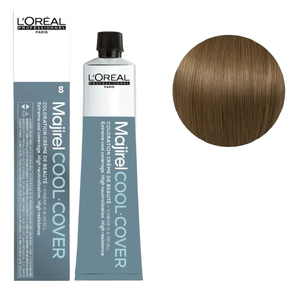 Majirel від L’Oreal Professionnel - це професійна стійка крем-фарба, створена для майстрів, які цінують точність, передбачуваність і розкішний результат фарбування. Формула розроблена з урахуванням останніх досягнень у сфері колористики, щоб забезпечити насичений колір, ідеальне покриття сивини та неперевершений блиск. Завдяки технології Ionene G™ та Incell™ волосся зберігає здорову структуру навіть після інтенсивного фарбування. Активні компоненти проникають у глибину волокна, зміцнюють кутикулу та підвищують стійкість кольору. Результат - шовковисті пасма з глибоким, багатовимірним відтінком. Особливості продукту: 8 Світлий блондин натуральний Фарба для волосся стійка для сивини, 60 мл Majirel Cool Cover L`Oreal Professionnel (оновлений формат) Застосування: 8 Світлий блондин натуральний Фарба для волосся стійка для сивини, 60 мл Majirel Cool Cover L`Oreal Professionnel (оновлений формат) Пропорції змішування з окислювачем: Час витримки залежить від обраної фарби та бажаного результату фарбування. Фарба Majirel від L’Oreal Professionnel призначена для професійного використання! Уважно ознайомтесь з інструкцією.Фарба для волосся стійка Majirel L`Oreal Professionnel (оновлений формат - 60 мл)