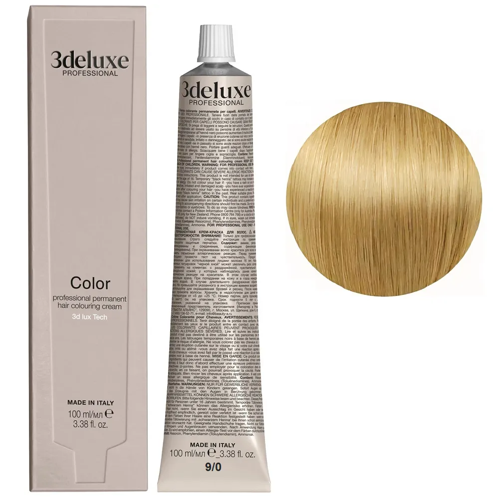 Професійна стійка кремова фарба для волосся Permanent Hair Color 3deluxe з неймовірним відбиттям світла та чудовим захистом, забезпечує волоссю неперевершену якість. Містить технологію 3D Lux, яка забезпечує насичений, яскравий, багатогранний колір: Особливості продукту: 9/0 дуже світлий блондин натуральний Фарба для волосся, 100 мл Permanent Hair Color 3deluxe Professional Активні компоненти: 9/0 дуже світлий блондин натуральний Фарба для волосся, 100 мл Permanent Hair Color 3deluxe Professional Застосування: 9/0 дуже світлий блондин натуральний Фарба для волосся, 100 мл Permanent Hair Color 3deluxe Professional Змішайте в пластмасовому посуді крему-фарбу Color 3deluxe з кремом-окислювачем 1,5%, 3%, 6%, 9% або 12%. Пропорції змішування: для основної палітри відтінків - 1:1,5, для освітлювального ряду - 1:2, для більш насиченого кольору - 1:1. Час витримки залежить від бажаного результату. Важливо! Продукт для професійного застосування. Уважно ознайомтесь з інструкцією.Фарба для волосся Permanent Hair Color 3deluxe Professional