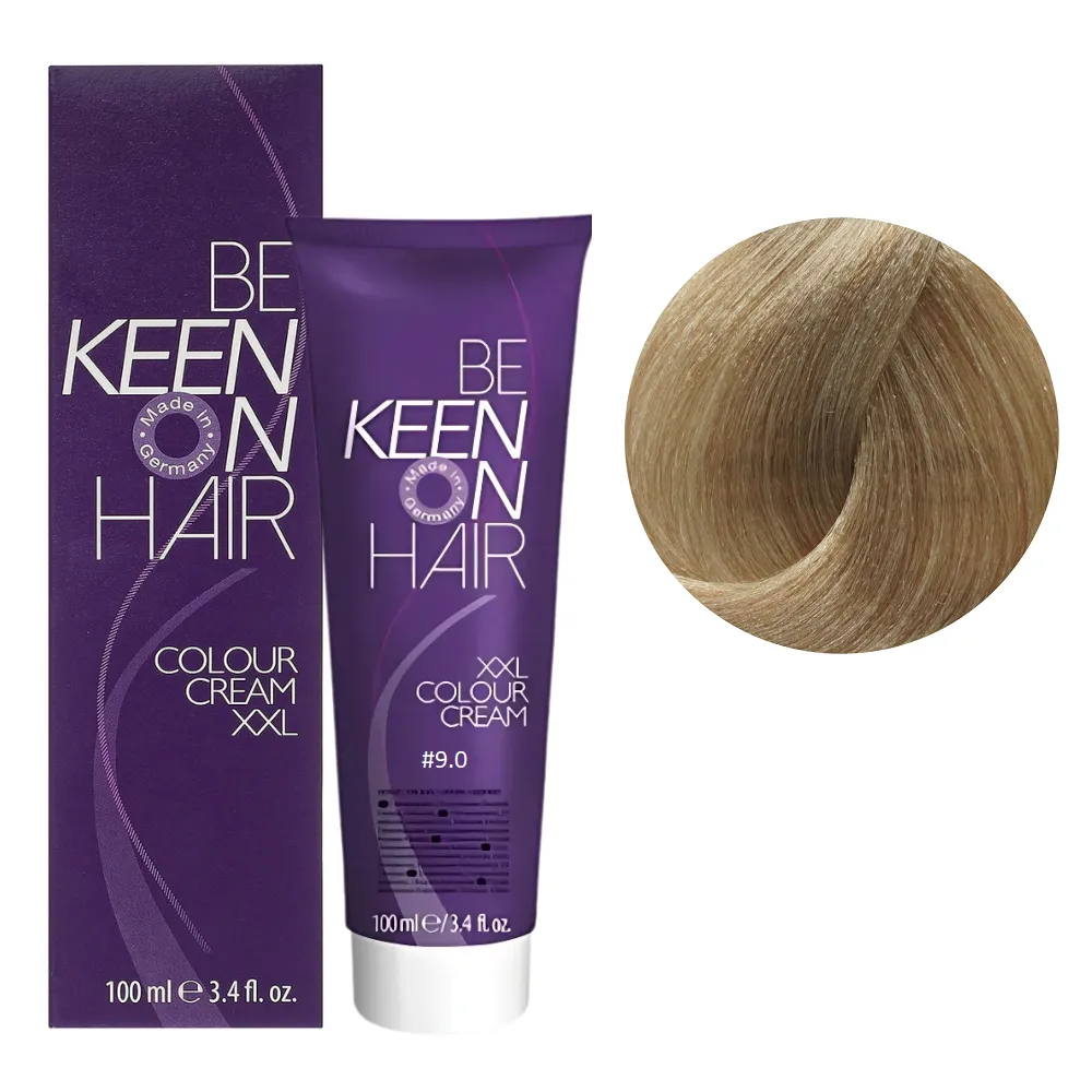 Краще співвідношення ціни та якості! Colour Cream XXL KEEN фарба німецького виробника завоювала визнання професійних майстрів і покупців по всій Європі. Палітра налічує понад 116 відтінків для креативної комбінації кольорів. Всі тони поєднуються між собою, їх можна змішувати, створюючи свій неповторний стиль. Кремоподібна текстура фарби легко наноситься, не тече і забезпечує рівномірний результат. Особливості продукту: 9/0# дуже світлий блондин натуральний спеціальнийч Стійка крем-фарба для волосся, 100 мл Colour Cream XXL KEEN Активні компоненти: гідролізовані молочні протеїни піклуються про волосся під час фарбування зберігають необхідну вологість, надає волоссю блиску та пружності. Застосування: 9/0# дуже світлий блондин натуральний спеціальний Стійка крем-фарба для волосся, 100 мл Colour Cream XXL KEEN Змішати в неметалевому посуді крем-фарбу Colour Cream XXL KEEN із крем-окислювачем. Фарбуючу суміш наносити на сухе чисте волосся. Вибір концентрації крем-окислювача 1,9%, 3%, 6%, 9% або 12% залежить від бажаного рівня освітлення. При використанні додаткового джерела тепла час витримки зменшується вдвічі. Пропорції змішування: 9/0# дуже світлий блондин натуральний спеціальний Стійка крем-фарба для волосся, 100 мл Colour Cream XXL KEEN Час витримки: 35 хвилин. Продукт призначений для професійного використання. Уважно ознайомтесь з інструкцією.Стійка крем-фарба для волосся Colour Cream XXL KEEN
