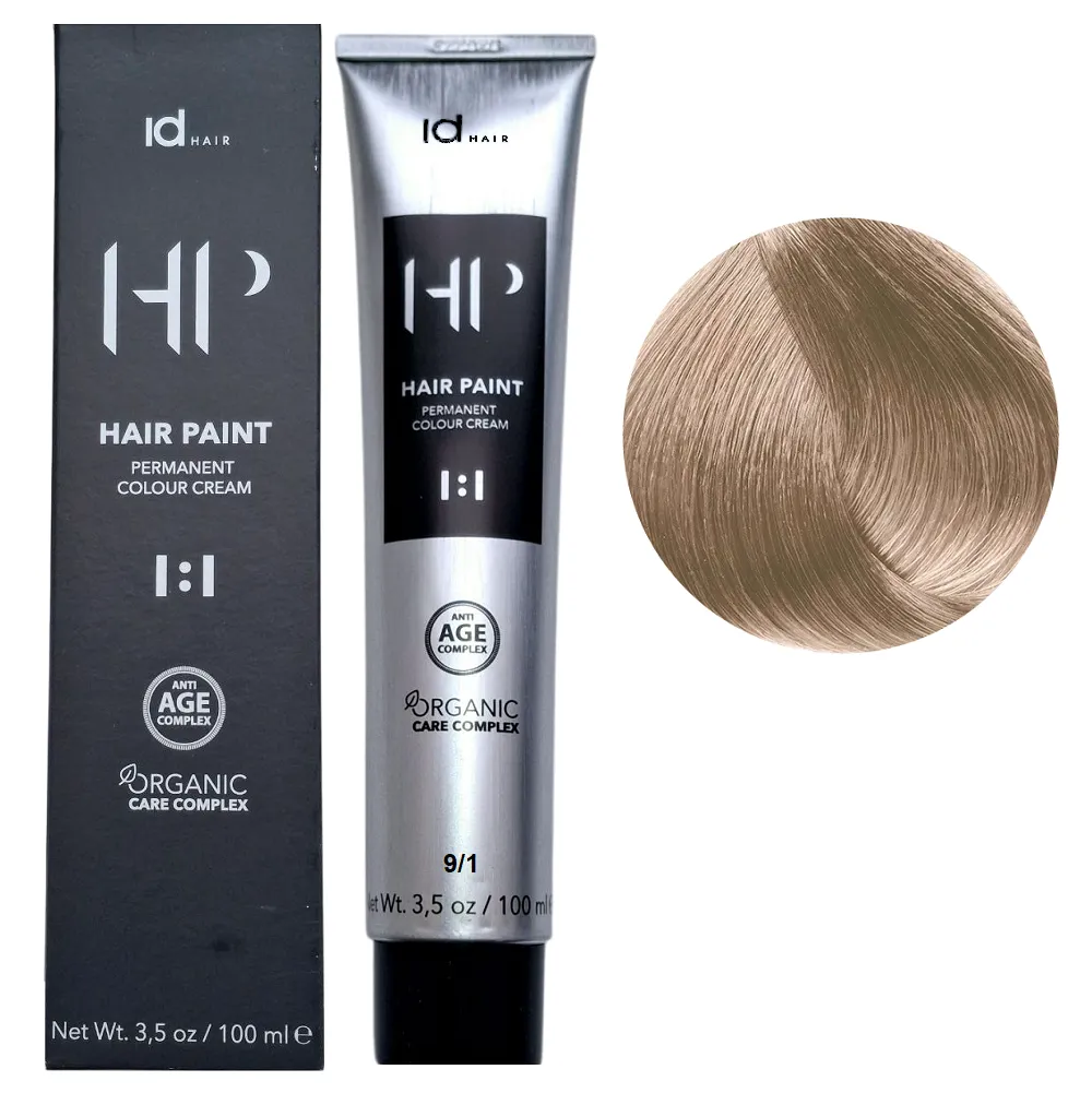 Фарба для волосся Hair Paint OCC ID Hair – це професійні фарбники для волосся з безліччю чудових, м’яких відтінків, які оптимально підходять для всіх типів волосся. Тепер демі-, семі- та перманентне фарбування доступно завдяки лише одному продукту. Фарба містить до 70% менше аміаку порівняно з іншими системами фарбування, що мінімізує ризик подразнення шкіри голови. Низький вміст аміаку у фарбі дозволяє легко використовувати фарбу для волосся з чутливою шкірою голови. Фарба включає комплекс органічного догляду (Organic Care Complex-OCC), що складається з трьох інгредієнтів: Технологія Anti-Ageing Complex не лише подовжує стійкість кольору, але й допомагає боротися з ознаками старіння волосся, гарантуючи, що волосся ваших клієнтів залишатиметься молодим та повним життя. Особливості продукту: 9/1 Крем-фарба для волосся перманентна,100мл HAIR PAINT Permanent Colour Cream OCC Id HAIR Застосування: 9/1 Крем-фарба для волосся перманентна,100мл HAIR PAINT Permanent Colour Cream OCC Id HAIR Змішати в неметалевому посуді крем-фарбу Hair Paint OCC ID Hair із окислювальною емульсією HP BOOSTER ID Hair у пропорції 1 : 1. При інтенсивному освітленні збільшити порцію HP BOOSTER ID Hair вдвічі (1 : 2). Вибір концентрації окислювача 1,5%, 3%, 6%, 9% або 12% залежить від бажаного рівня освітлення. Час витримки: від 30 хвилин. Продукт призначений для професійного використання. Уважно ознайомтесь з інструкцією.Крем-фарба для волосся перманентна HAIR PAINT Permanent Colour Cream OCC Id HAIR