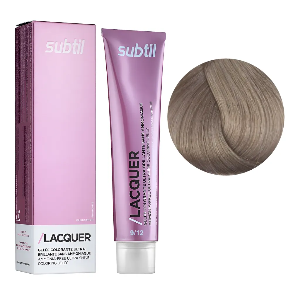 Subtil Lacquer - це фарба для волосся, створена без використання аміаку, на основі гілауроновой кислоти, рослинного кератину і EPOLINE - запатентованої формули (кукурудзяна олія + кисень). З цією фарбою тепер ви можете забути про процедуру відновлення кератину - фарбування і насичення волосся кератином відбувається одночасно і всього за 20 хвилин. Формула Lacquer містить також компоненти, що захищають шкіру, це робить фарбу доступною для застосування при дуже чутливій шкірі голови. Особливості продукту: 9/12 дуже світлий блондин попелясто-переливчастий Безаміачна тонувальна гелева фарба на кислотній основі, 60 мл LACQUER SUBTIL Застосування: 9/12 дуже світлий блондин попелясто-переливчастий Безаміачна тонувальна гелева фарба на кислотній основі, 60 мл LACQUER SUBTIL Час витримки: 9/12 дуже світлий блондин попелясто-переливчастий Безаміачна тонувальна гелева фарба на кислотній основі, 60 мл LACQUER SUBTIL Витримати на волоссі 20 хвилин після нанесення на коріння. Застосовувати фарбу слід, суворо дотримуючись інструкції, яка додається до кожної упаковки.Безаміачна тонувальна гелева фарба на кислотній основі LACQUER SUBTIL