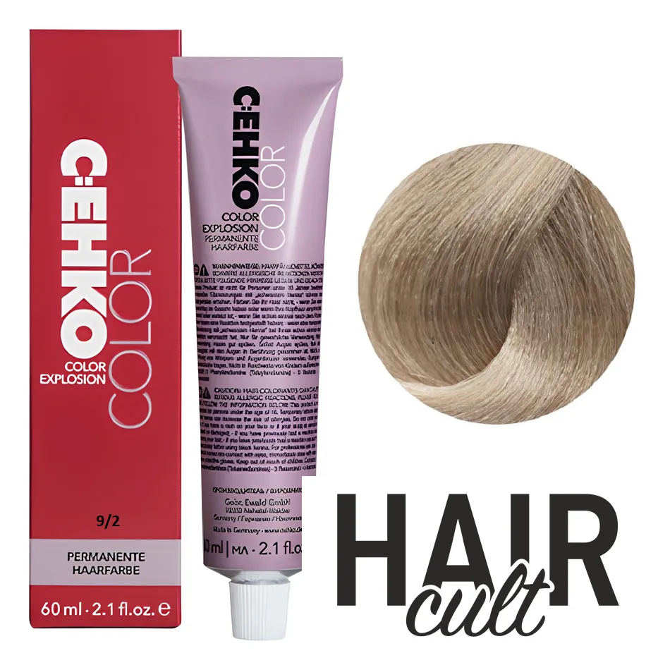 9/2 Дуже світлий блондин попелястий Стійка перманентна крем-фарба для волосся, 60 мл Permament Hair Color EXPLOSION C:EHKO