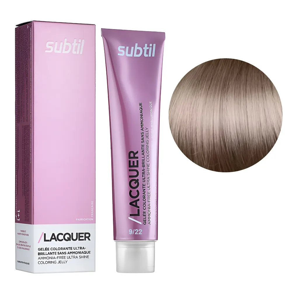 Subtil Lacquer - це фарба для волосся, створена без використання аміаку, на основі гілауроновой кислоти, рослинного кератину і EPOLINE - запатентованої формули (кукурудзяна олія + кисень). З цією фарбою тепер ви можете забути про процедуру відновлення кератину - фарбування і насичення волосся кератином відбувається одночасно і всього за 20 хвилин. Формула Lacquer містить також компоненти, що захищають шкіру, це робить фарбу доступною для застосування при дуже чутливій шкірі голови. Особливості продукту: 9/22 дуже світлий блондин інтенсивний переливчастий Безаміачна тонувальна гелева фарба на кислотній основі, 60 мл LACQUER SUBTIL Застосування: 9/22 дуже світлий блондин інтенсивний переливчастий Безаміачна тонувальна гелева фарба на кислотній основі, 60 мл LACQUER SUBTIL Час витримки: 9/22 дуже світлий блондин інтенсивний переливчастий Безаміачна тонувальна гелева фарба на кислотній основі, 60 мл LACQUER SUBTIL Витримати на волоссі 20 хвилин після нанесення на коріння. Застосовувати фарбу слід, суворо дотримуючись інструкції, яка додається до кожної упаковки.Безаміачна тонувальна гелева фарба на кислотній основі LACQUER SUBTIL