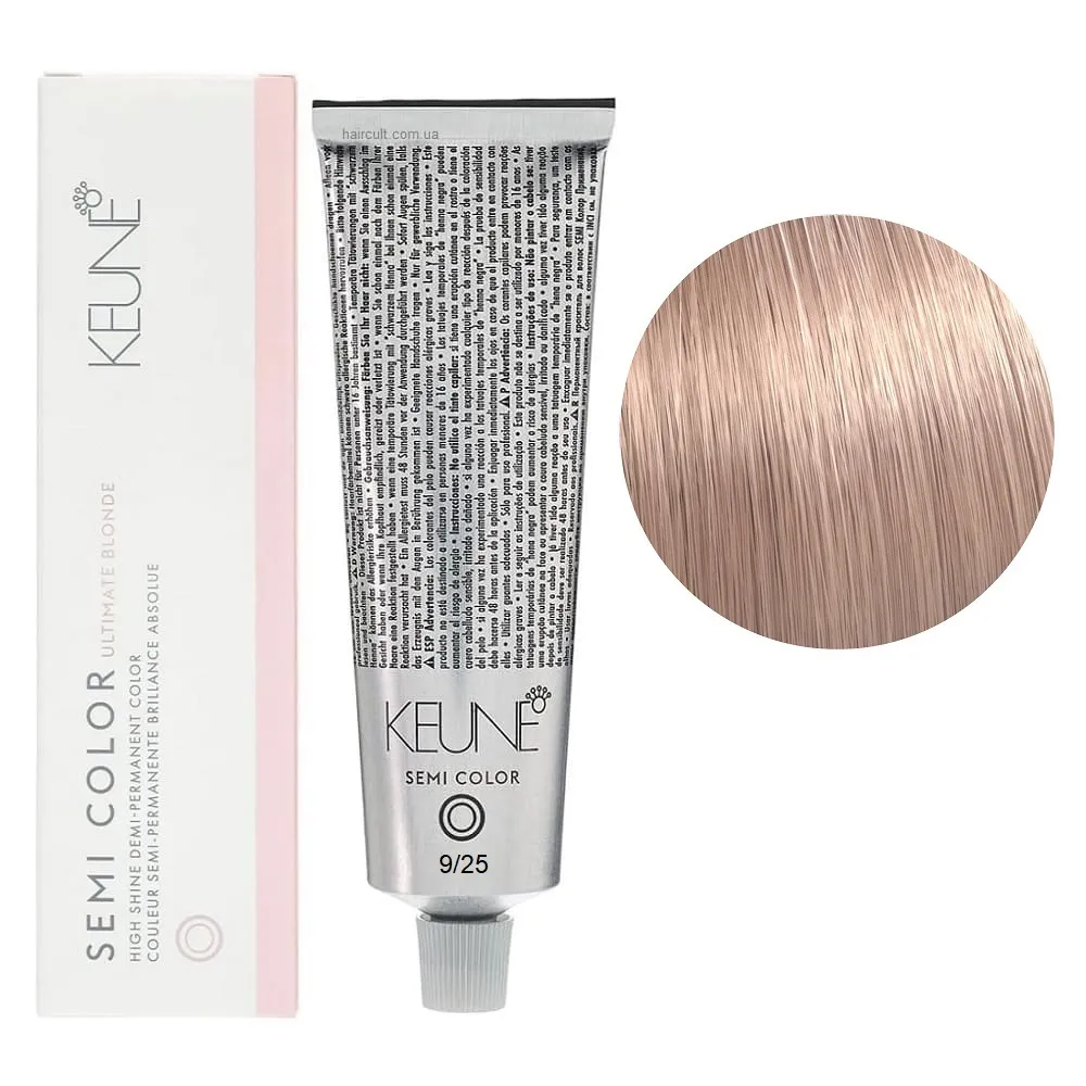 Keune Semi Color - це інноваційна безаміачна крем-фарба для волосся, створена на основі технології Silsoft, що забезпечує стійкий результат без шкоди для структури волосся. Засіб ідеально підходить для тонування, освіження кольору та фарбування до 70% сивини. Формула нового покоління містить активні компоненти, які м’яко відновлюють природний відтінок, роблять волосся гладким, м’яким і еластичним. Завдяки нейтральному pH та відсутності аміаку, фарба підходить навіть для чутливої шкіри голови та волосся після хімічних процедур. Особливості продукту: 9/25 Дуже світлий блондин перламутрово-махагоновий Фарба для тонування волосся без аміаку, 60 мл Demi-Permanent Color SЕМІ COLOR KEUNE Застосування: 9/25 Дуже світлий блондин перламутрово-махагоновий Фарба для тонування волосся без аміаку, 60 мл Demi-Permanent Color SЕМІ COLOR KEUNE Фарбу Keune Semi Color слід змішати з Activator Semi Color (2.25%) або Activator Intense Semi Color (3%) у співвідношенні 1:2. Час витримки 20 хвилин. Продукт для професійного використання. Уважно ознайомтесь з офіційною інструкцією.Фарба для тонування волосся без аміаку Demi-Permanent Color SЕМІ COLOR KEUNE