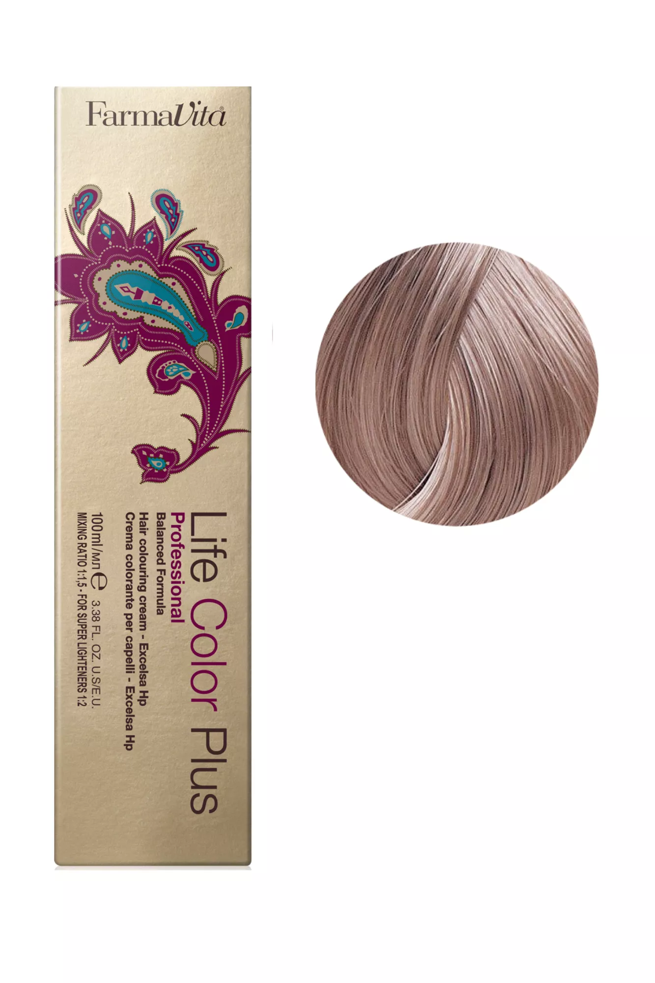 LIFE COLOR PLUS FarmaVita - професійна перманентна крем-фарба Фарба містить зволожуючі олигопептиди і високоякісні пігменти, які забезпечують блискучі, насичені кольори з оптимальним ступенем покриття сивини (100%). Точне балансування складу забезпечує стабілізований колір, уникаючи вицвітання і зберігаючи його яскравим протягом тривалого періоду часу. Склад фарби збагачений революційними компонентами, які поглинають і руйнують запах аміаку. Пропорції змішування: 1 частина фарби Life Color Plus і 1.5 частини окислювача 3% (10vol), 6% (20vol), 9% (30vol), 12% (40vol) при застосуванні суперблондов: 1 частина фарби і 2 частини окислювача 12% (40vol) щоб отримати більш насичений відтінок: 1 частина крем-фарби Life Color Plus і одна частина окислювача 3% (10vol), 6% (20vol), 9% (30vol). Час витримки залежить від обраного кольору і бажаного результату.