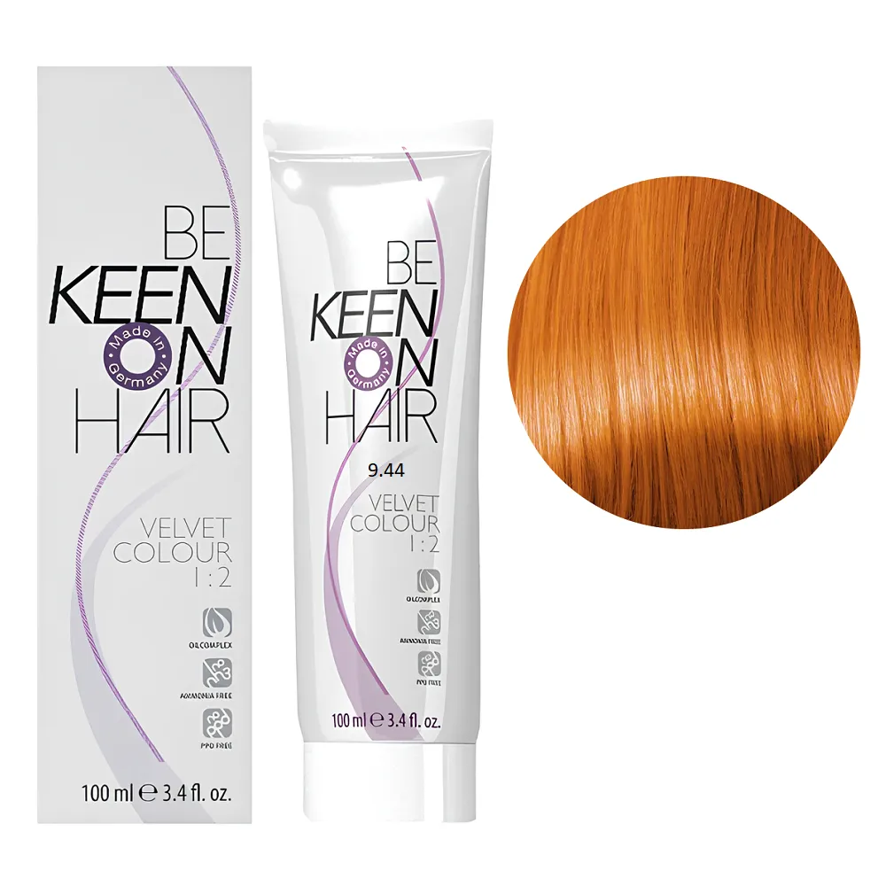 Перманентна крем-фарба VELVET COLOUR призначена для тонування та для делікатного фарбування. Забезпечує 90% зафарбовування сивини і має чудову стійкість. Стійкість до 40 разів миття. Особливості продукту: 9/44 світлий інтенсивно-мідний блондин Перманентна крем-фарба без аміаку, 100 мл VELVET COLOUR KEEN Активні компоненти: 9/44 світлий інтенсивно-мідний блондин Перманентна крем-фарба без аміаку, 100 мл VELVET COLOUR KEEN Застосування: 9/44 світлий інтенсивно-мідний блондин Перманентна крем-фарба без аміаку, 100 мл VELVET COLOUR KEEN Час витримки: 20-30 хвилин. Продукт призначений для професійного використання. Уважно ознайомтесь з інструкцією.Перманентна крем-фарба без аміаку VELVET COLOUR KEEN
