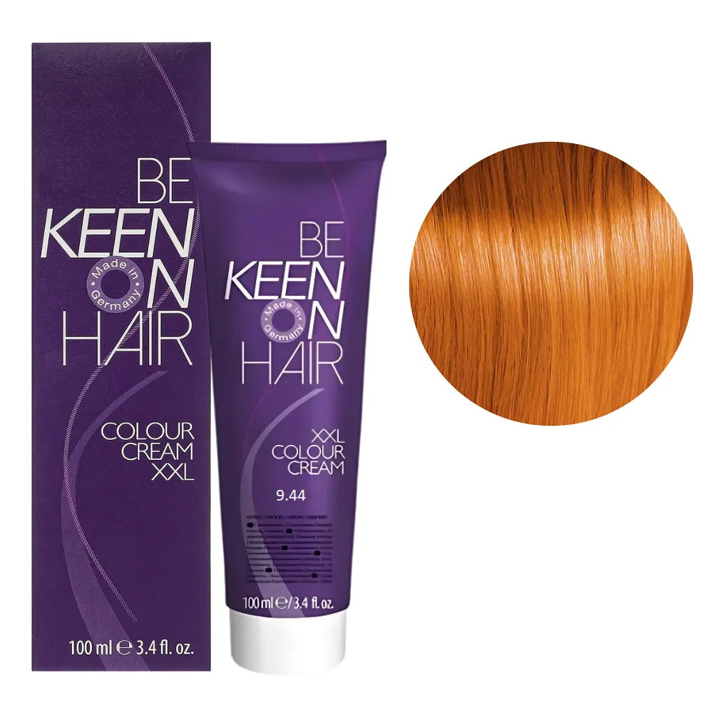 Краще співвідношення ціни та якості! Colour Cream XXL KEEN фарба німецького виробника завоювала визнання професійних майстрів і покупців по всій Європі. Палітра налічує понад 116 відтінків для креативної комбінації кольорів. Всі тони поєднуються між собою, їх можна змішувати, створюючи свій неповторний стиль. Кремоподібна текстура фарби легко наноситься, не тече і забезпечує рівномірний результат. Особливості продукту: 9/44 дуже світлий блондин мідний інтенсивний Стійка крем-фарба для волосся, 100 мл Colour Cream XXL KEEN Активні компоненти: гідролізовані молочні протеїни піклуються про волосся під час фарбування зберігають необхідну вологість, надає волоссю блиску та пружності. Застосування: 9/44 дуже світлий блондин мідний інтенсивний Стійка крем-фарба для волосся, 100 мл Colour Cream XXL KEEN Змішати в неметалевому посуді крем-фарбу Colour Cream XXL KEEN із крем-окислювачем. Фарбуючу суміш наносити на сухе чисте волосся. Вибір концентрації крем-окислювача 1,9%, 3%, 6%, 9% або 12% залежить від бажаного рівня освітлення. При використанні додаткового джерела тепла час витримки зменшується вдвічі. Пропорції змішування: 9/44 дуже світлий блондин мідний інтенсивний Стійка крем-фарба для волосся, 100 мл Colour Cream XXL KEEN Час витримки: 35 хвилин. Продукт призначений для професійного використання. Уважно ознайомтесь з інструкцією.Стійка крем-фарба для волосся Colour Cream XXL KEEN