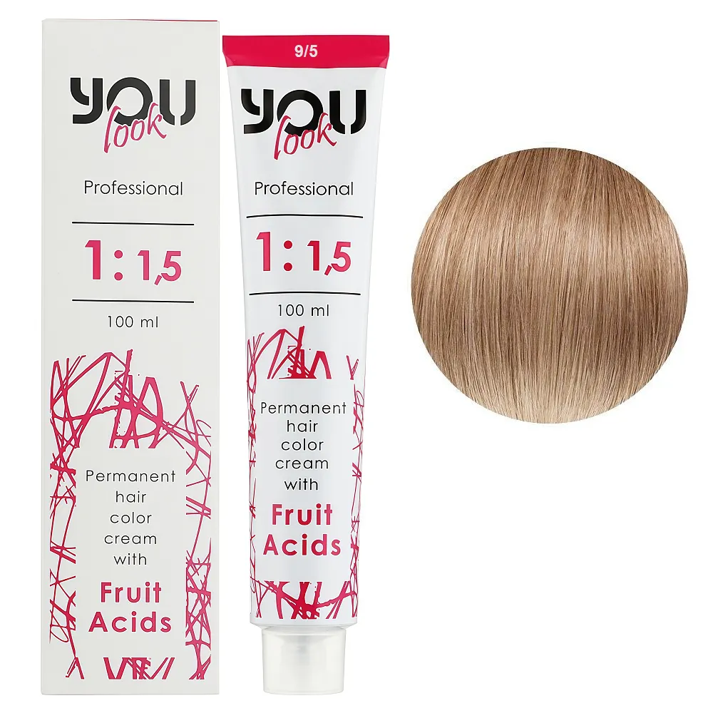 Стійка фарба для волосся бренду You look Professional – це можливість отримати розкішний відтінок і водночас не отримати ушкодження у вигляді сухості, ламкості та посічених кінчиків. Багата палітра відтінків і спеціальна стійка формула відкриють для вас нові можливості для експериментів з різними кольорами. Засіб збагачений фруктовими кислотами, які заспокоюють шкіру голови та запобігають появі пошкоджень структури під час фарбування. Після застосування фарби ваше волосся буде ідеальним, насиченим, яскравим і блискучим. Особливості продукту: 9/5 дуже світлий махагоновий блондин Крем-фарба стійка з фруктовими кислотами, 100 мл You look Professional Застосування: 9/5 дуже світлий махагоновий блондин Крем-фарба стійка з фруктовими кислотами, 100 мл You look Professional Пропорції змішування фарби You look з окислювачем 1,5%, 3%, 6%, 9%, 12% : Час витримки залежить від бажаного результату. Важливо! Продукт для професійного застосування. Уважно ознайомтесь з інструкцією.Крем-фарба стійка з фруктовими кислотами You look Professional