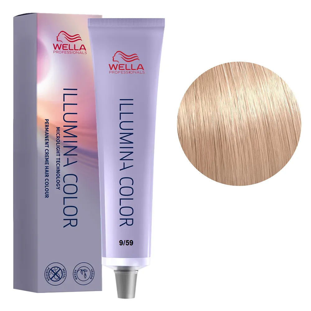Формула фарби ILLUMINA COLOR заснована на запатентованій технології MICROLIGHT, яка захищає кутикулу волосся та не перевантажує його. Дана технологія обволікає мідні частки на поверхні кутикули, що перешкоджає їх взаємодії з фарбувальної сумішшю і підвищує тим самим захист лускатого шару. Це дозволяє променям світла вільно проникати всередину волосся та надає природним переливам кольору неймовірного сяйва, яке помітно при будь-якому освітленні. Всі тони поєднуються між собою, їх можна змішувати та створювати свій неповторний стиль. Фарба чудово підходить для першого досвіду для клієнтів, які бояться фарбування волосся. Особливості продукту: 9/59 яскравий блондин махагоновий Стійка крем-фарба для волосся, 60 мл ILLUMINA COLOR Wella Professionals Застосування: 9/59 яскравий блондин махагоновий Стійка крем-фарба для волосся, 60 мл ILLUMINA COLOR Wella Professionals Змішати в неметалевому посуді крем-фарбу ILLUMINA COLOR Wella Professionals із оксидантом WELLOXON PERFECT Wella Professionals у пропорції 1:1 (60 мл фарби + 60 мл оксиданту). Фарбуючу суміш наносити на сухе волосся. Час витримки: до 40 хвилин (до 25 хвилин з підігрівом) Продукт призначений для професійного використання. Уважно ознайомтесь з інструкцією.Стійка крем-фарба для волосся, 60 мл ILLUMINA COLOR Wella Professionals