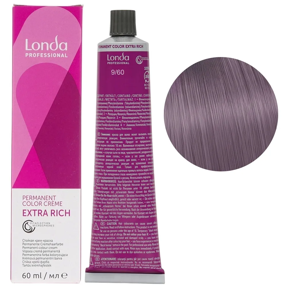 Стійка крем-фарба з мікросферами Vitaflection, які відбивають світло, для стійкого, насиченого життєвою енергією кольору і виняткового блиску волосся. Забезпечує тривалий результат – завдяки спеціальній технології фарба глибоко проникає у структуру волосся, забезпечує інтенсивний колір до 8 тижнів. Має широку палітру понад 100 відтінків для будь-якого типу та кольору волосся. Особливості продукту: 9/60 дуже світлий блондин фіолетово-натуральний Стійка фарба для волосся, 60 мл Permanent Color Londa Professional Фарба має престижну систему ароматів з високоякісним маскуванням аміаку, що робить фарбування більш приємним досвідом для вашого клієнта. Застосування: 9/60 дуже світлий блондин фіолетово-натуральний Стійка фарба для волосся, 60 мл Permanent Color Londa Professional Змішати фарбу Permanent Color з окислювачем Permanent Hair Colour Developer Londacolor 3%, 6%, 9% або 12%. Пропорції змішування: Час витримки залежить від бажаного результату. Важливо! Продукт для професійного застосування. Уважно ознайомтесь з інструкцією.Стійка фарба для волосся Permanent Color Londa Professional
