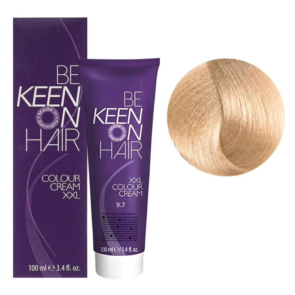 Краще співвідношення ціни та якості! Colour Cream XXL KEEN фарба німецького виробника завоювала визнання професійних майстрів і покупців по всій Європі. Палітра налічує понад 116 відтінків для креативної комбінації кольорів. Всі тони поєднуються між собою, їх можна змішувати, створюючи свій неповторний стиль. Кремоподібна текстура фарби легко наноситься, не тече і забезпечує рівномірний результат. Особливості продукту: 9/7 дуже світлий блондин каштановий Стійка крем-фарба для волосся, 100 мл Colour Cream XXL KEEN Активні компоненти: гідролізовані молочні протеїни піклуються про волосся під час фарбування зберігають необхідну вологість, надає волоссю блиску та пружності. Застосування: 9/7 дуже світлий блондин каштановий Стійка крем-фарба для волосся, 100 мл Colour Cream XXL KEEN Змішати в неметалевому посуді крем-фарбу Colour Cream XXL KEEN із крем-окислювачем. Фарбуючу суміш наносити на сухе чисте волосся. Вибір концентрації крем-окислювача 1,9%, 3%, 6%, 9% або 12% залежить від бажаного рівня освітлення. При використанні додаткового джерела тепла час витримки зменшується вдвічі. Пропорції змішування: 9/7 дуже світлий блондин каштановий Стійка крем-фарба для волосся, 100 мл Colour Cream XXL KEEN Час витримки: 35 хвилин. Продукт призначений для професійного використання. Уважно ознайомтесь з інструкцією.Стійка крем-фарба для волосся Colour Cream XXL KEEN