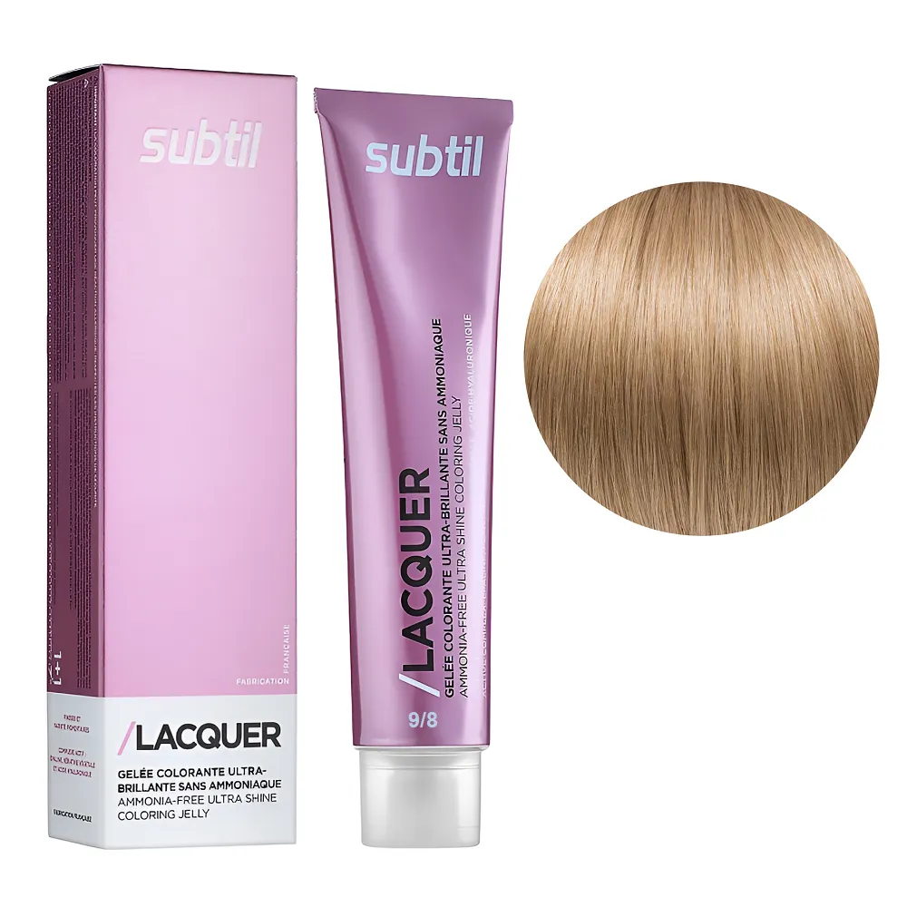 Subtil Lacquer - це фарба для волосся, створена без використання аміаку, на основі гілауроновой кислоти, рослинного кератину і EPOLINE - запатентованої формули (кукурудзяна олія + кисень). З цією фарбою тепер ви можете забути про процедуру відновлення кератину - фарбування і насичення волосся кератином відбувається одночасно і всього за 20 хвилин. Формула Lacquer містить також компоненти, що захищають шкіру, це робить фарбу доступною для застосування при дуже чутливій шкірі голови. Особливості продукту: 9/8 дуже світлий блондин бежевий Безаміачна тонувальна гелева фарба на кислотній основі, 60 мл LACQUER SUBTIL Застосування: 9/8 дуже світлий блондин бежевий Безаміачна тонувальна гелева фарба на кислотній основі, 60 мл LACQUER SUBTIL Час витримки: 9/8 дуже світлий блондин бежевий Безаміачна тонувальна гелева фарба на кислотній основі, 60 мл LACQUER SUBTIL Витримати на волоссі 20 хвилин після нанесення на коріння. Застосовувати фарбу слід, суворо дотримуючись інструкції, яка додається до кожної упаковки.Безаміачна тонувальна гелева фарба на кислотній основі LACQUER SUBTIL
