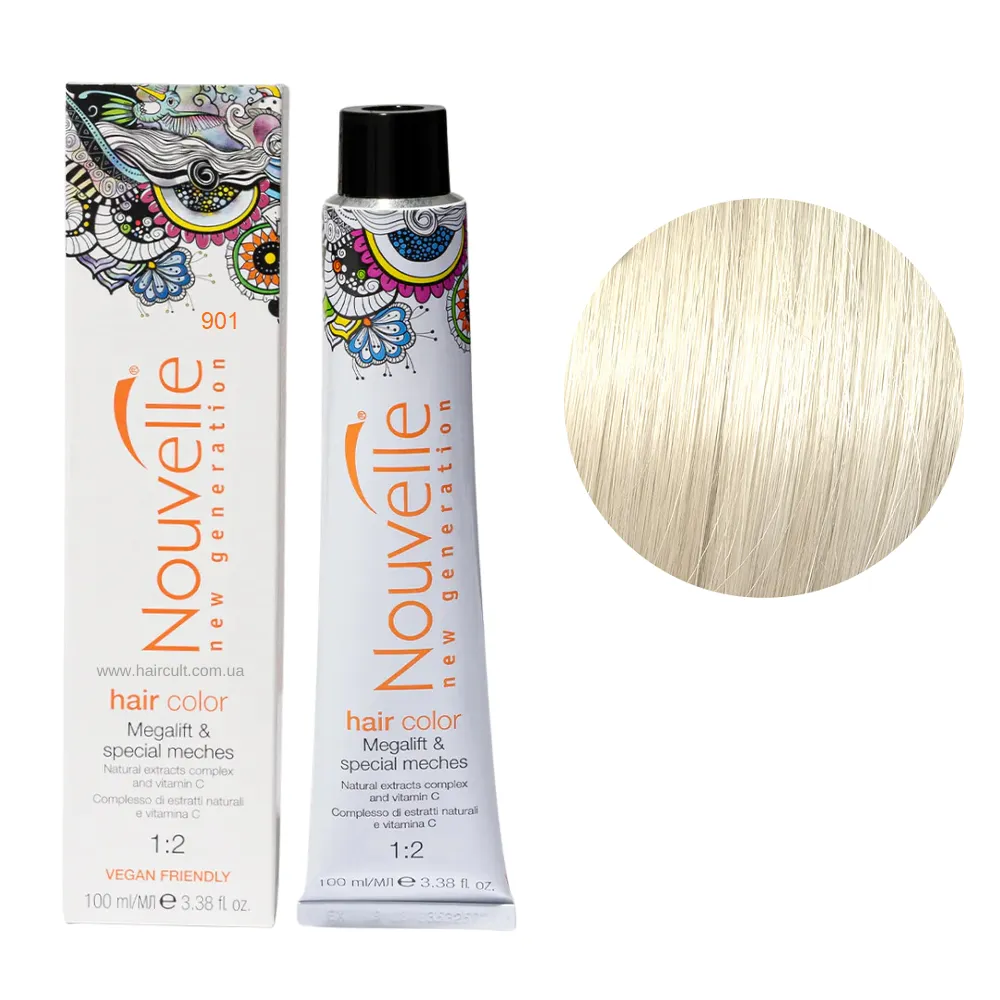 Nouvelle New Generation Hair Color - це стійка аміачна крем-фарба для волосся, яка забезпечує насичений, тривалий колір і професійний результат. Продукт пропонує широку палітру, що включає натуральні, яскраві, модні та ультрасвітлі тони. Особливості продукту: 901 ультрасвітлий попелястий блондин Фарба для волосся перманентна, 100мл Permanent Hair Color Nouvelle Застосування: 901 ультрасвітлий попелястий блондин Фарба для волосся перманентна, 100мл Permanent Hair Color Nouvelle Фарбу змішують із окислювачем Nouvelle Developer Cream Peroxide (1,5%, 3%, 6%, 9% або 12%) у відповідних пропорціях залежно від бажаного ефекту: тонування, освітлення чи зафарбовування сивини. Суміш наноситься на сухе, немите волосся із витримкою 25-50 хвилин, залежно від інтенсивності кольору. Після фарбування рекомендується використовувати шампунь і доглядові засоби з серії Nouvelle Color Glow для збереження кольору і здоров’я волосся.Фарба для волосся перманентна Permanent Hair Color Nouvelle