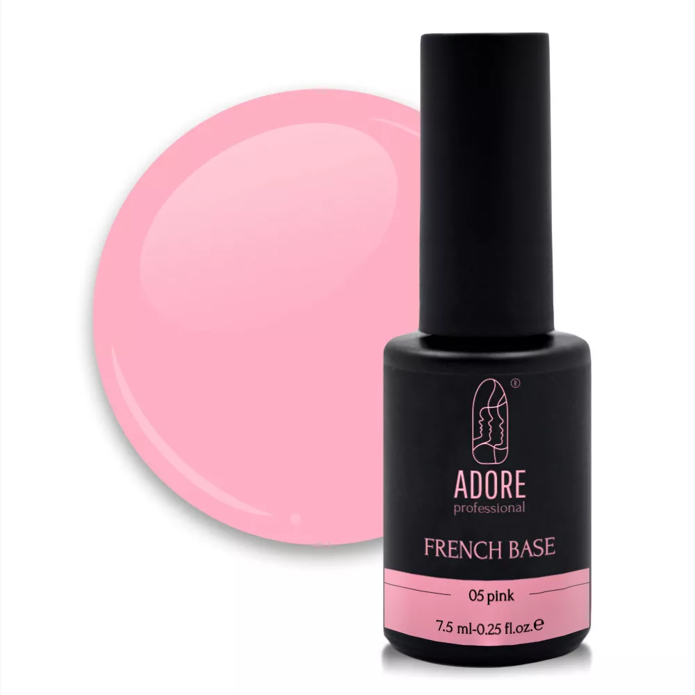 FRENCH BASE Камуфлююча база №05 - рожева, це палітра камуфлюючих баз ідеальних френчових відтінків, що імітують та тонують натуральний колір нігтьової пластини.