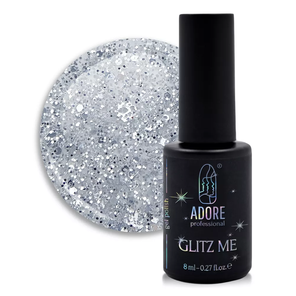 GLITZ ME GEL POLISH - високоякісні прозорі гель-лаки з голографічними блискітками різних форм, відтінків та розмірів.