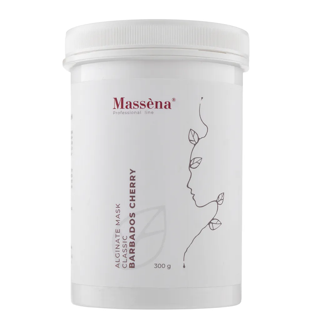 Барбадоська вишня BARBADOS CHERRY альгінатна маска для обличчя - це професійний засіб для комплексного догляду за шкірою, який дарує їй молодість, сяйво та здоровий вигляд. Маска містить високий вміст екстракту ацероли (Барбадоської вишні), що насичує шкіру вітаміном C, стимулює регенерацію, підвищує еластичність і забезпечує захист від шкідливих впливів довкілля: Ідеально підходить для догляду за віковою, куперозною та пігментованою шкірою, а також для шкіри зі зниженим тургором. Особливості продукту: Альгінатна маска для обличчя "Барбадоська вишня", 300 г BARBBADOS CHERRY Classic Alginate Mask Massena Активні компоненти: Альгінатна маска для обличчя "Барбадоська вишня", 300 г BARBBADOS CHERRY Classic Alginate Mask Massena екстракт ацероли містить калій, магній, кальцій, фосфор, пантотенову кислоту, що сприяє швидкому відновленню та регенерації клітин шкіри обличчя. Застосування: Альгінатна маска для обличчя "Барбадоська вишня", 300 г BARBBADOS CHERRY Classic Alginate Mask MassenaАльгінатна маска для обличчя "Барбадоська вишня" BARBBADOS CHERRY Classic Alginate Mask Massena
