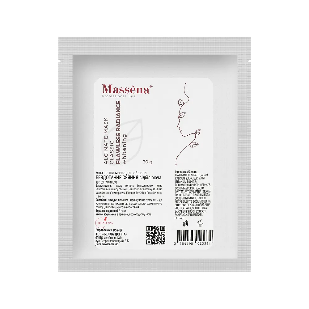 Відбілювальна FLAWLESS RADIANCE бездоганне сяяння, альгінатна маска – це чудовий засіб для тих, хто прагне досягти рівного та здорового тону шкіри. Завдяки своєму унікальному складу маска активно зменшує прояви пігментації, забезпечує шкірі сяйво та свіжість. Спеціально розроблена формула з рослинним освітлювальним комплексом сприяє інгібіції тирозинази, зменшує дефекти пігментації та запобігає утворенню нових плям. Особливості продукту: Альгінатна маска для обличчя (САШЕ) відбілювальна "Бездоганне сяяння", 30 г FLAWLESS RADIANCE Classic Alginate Mask Massena Активні компоненти: Альгінатна маска для обличчя (САШЕ) відбілювальна "Бездоганне сяяння", 30 г FLAWLESS RADIANCE Classic Alginate Mask Massena Застосування: Альгінатна маска для обличчя (САШЕ) відбілювальна "Бездоганне сяяння", 30 г FLAWLESS RADIANCE Classic Alginate Mask MassenaАльгінатна маска для обличчя відбілювальна "Бездоганне сяяння", 300 г FLAWLESS RADIANCE Classic Alginate Mask Massena