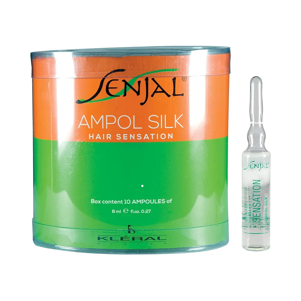 Ампули двофазні Ampol Silk відновлюють волосяну структуру, повертають щільність, шовковистість і неймовірний блиск. Мають пролонгований ефект. Рекомендується застосовувати при догляді за нарощеними волоссям. Активні компоненти: Особливості продукту: Застосування: рівномірно нанести вміст ампули на чисте висушене рушником волосся по всій довжині, не змивати.Ампули двофазні для відновлення структури волосся Ampol Silk Senjal Line KLERAL System