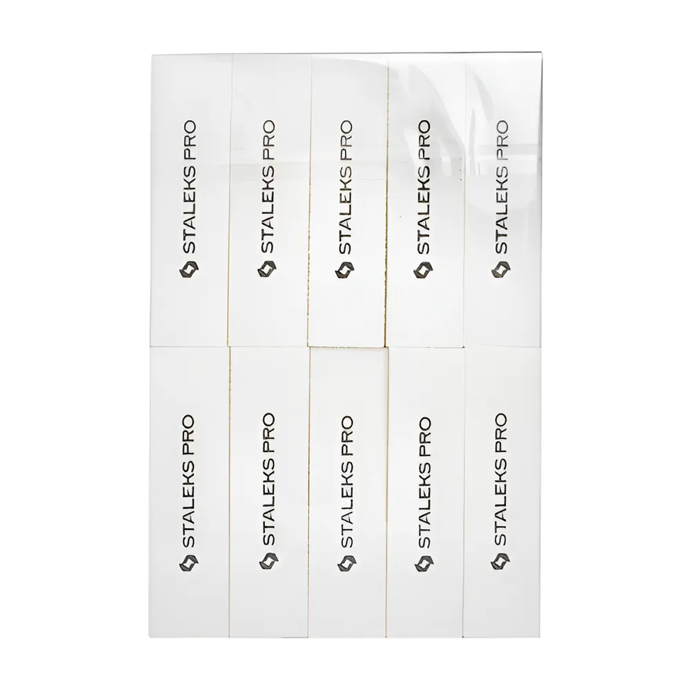 Бафи EXPERT 51 використовують для підготовки натуральних нігтів до процедури нарощування та нанесення штучного покриття. Акуратне полірування кожного нігтики прибирає блиск і допомагає створити злегка шорстку поверхню. Інструмент підходить для шліфування штучних нігтів, корекції та згладжування нерівностей та борозен на поверхні Бафи для нігтів прямокутні для шліфування нігтів 150 грит у вигляді брусочка, з 4 робочими сторонами з однаковою абразивністю кожна. Всередині гнучка та еластична підкладка з піноматеріалу, яка легко адаптується до форми нігтьової пластини. Робоча область покрита міцним абразивним зерном — воно не обсипається й довго зберігає свої робочі характеристики. Набір складається з 10 шліфувальників абразивністю 150 грит, що використовуються для обробки натуральних та штучних нігтьових пластин. Особливості продукту: Бафи-шліфувальники для манікюру EXPERT 51 прямокутні STALEKS PROБафи-шліфувальники для манікюру EXPERT 51 прямокутні STALEKS PRO