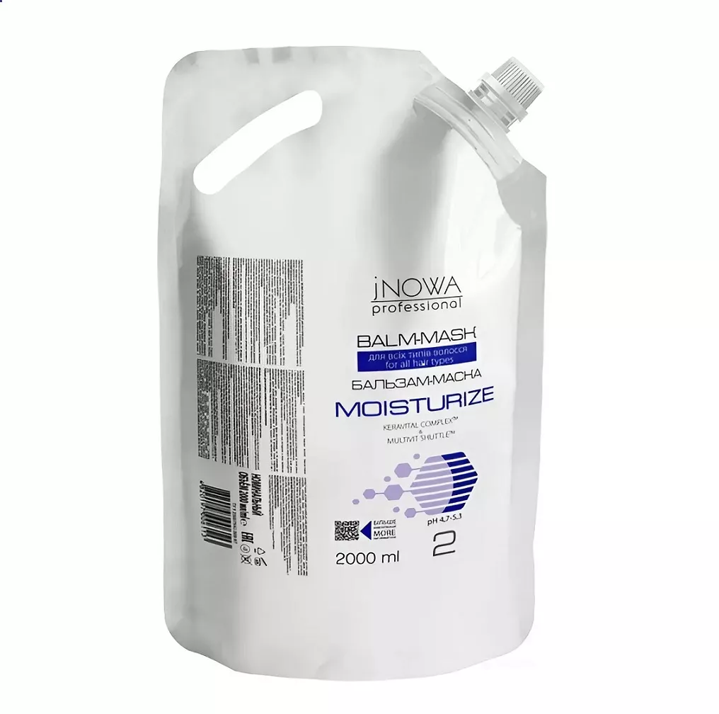 MOISTURIZE JNOWA Professional - серія професійної продукції для зволоження волосся Призначена для застосовання після процедур кератинового випрямлення волосся, ботоксу та хімічної завивки. БАЛЬЗАМ-МАСКА ДЛЯ ЗВОЛОЖЕННЯ ВОЛОССЯ MOISTURIZE JNOWA Professional KeraVital COMPLEX – інноваційний комплекс, спеціально розроблений Інститутом Здорового Волосся ACME MultivitShutle – інноваційна збалансована система доставки комбінації з вітамінів та зволожувачів на стрижень волосини. Застосування: нанести на вимите шампунем Sulfate Free Shampo MOISTURIZE JNOWA Professional волосся, витримати 2-3 хвилини, ретельно змити водою.