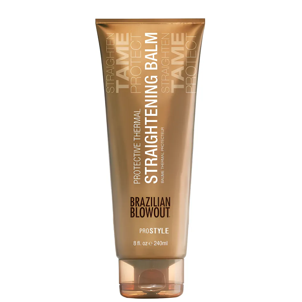 Термоактивний випрямляючий бальзам Protective Thermal Straightening Balm - відмінна основа під праску (стайлер для волосся). Він створює захисний протеїновий шар, що рятує волосся від наслідків гарячих укладок. Призначений для всіх типів волосся. Особливості продукту: Бальзам захисний термоактивний для випрямлення волосся на основі бразильської ягоди асаї, 240 мл Protective Thermal Straightening Balm BRAZILIAN BLOWOUT Застосування: Бальзам захисний термоактивний для випрямлення волосся на основі бразильської ягоди асаї, 240 мл Protective Thermal Straightening Balm BRAZILIAN BLOWOUT На підсушене рушником волосся по всій довжині від коренів до кінчиків нанесіть бальзам. Для отримання найкращого результату просушіть волосся феном за середнього/сильного натягу, використовуючи пряму або круглу щітку. Укладайте як завжди.Бальзам захисний термоактивний для випрямлення волосся на основі бразильської ягоди асаї Protective Thermal Straightening Balm BRAZILIAN BLOWOUT