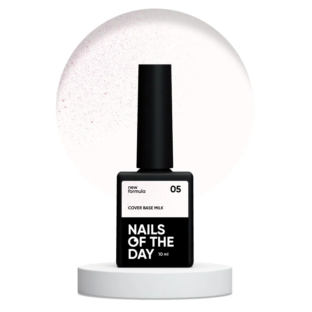 • Колір Milk Cover Base NEW Formula №05 — Молочний напівпрозорий з рожевим шимером, який підсилює відтінок та робить його більш теплим;