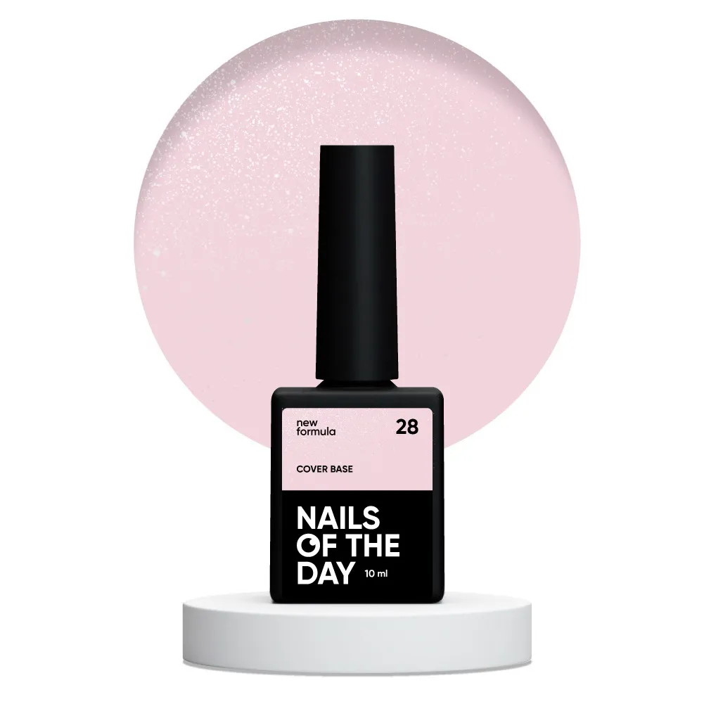 • Колір Cover Base NEW Formula №028 — Напівпрозорий пудрово–рожевий зі срібним шимером;