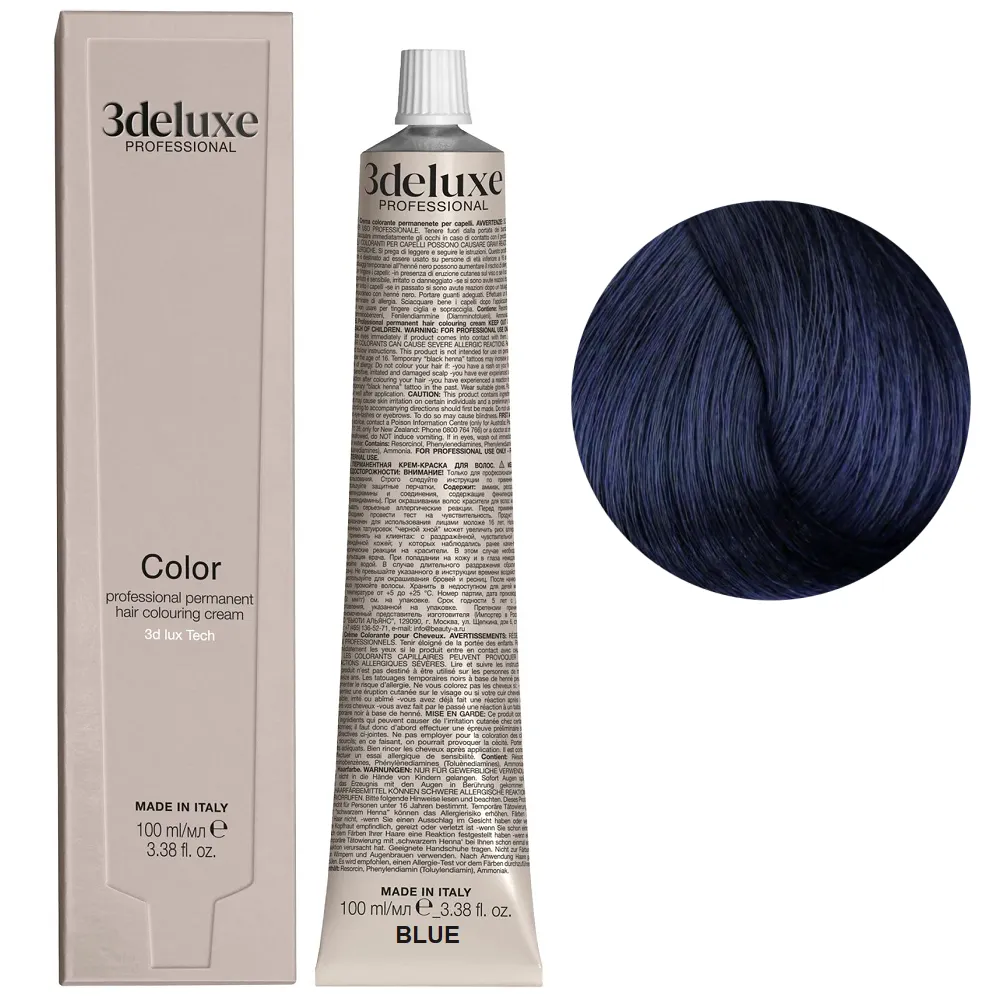Професійна стійка кремова фарба для волосся Permanent Hair Color 3deluxe з неймовірним відбиттям світла та чудовим захистом, забезпечує волоссю неперевершену якість. Містить технологію 3D Lux, яка забезпечує насичений, яскравий, багатогранний колір: Особливості продукту: Blue Mix (Синій коректор) Фарба для волосся, 100 мл Permanent Hair Color 3Deluxe Professional Активні компоненти: Blue Mix (Синій коректор) Фарба для волосся, 100 мл Permanent Hair Color 3deluxe Professional Застосування: Blue Mix (Синій коректор) Фарба для волосся, 100 мл Permanent Hair Color 3deluxe Professional Змішайте в пластмасовому посуді крему-фарбу Color 3deluxe з кремом-окислювачем 1,5%, 3%, 6%, 9% або 12%. Пропорції змішування: для основної палітри відтінків - 1:1,5, для освітлювального ряду - 1:2, для більш насиченого кольору - 1:1. Час витримки залежить від бажаного результату. Важливо! Продукт для професійного застосування. Уважно ознайомтесь з інструкцією.Фарба для волосся Permanent Hair Color 3deluxe Professional