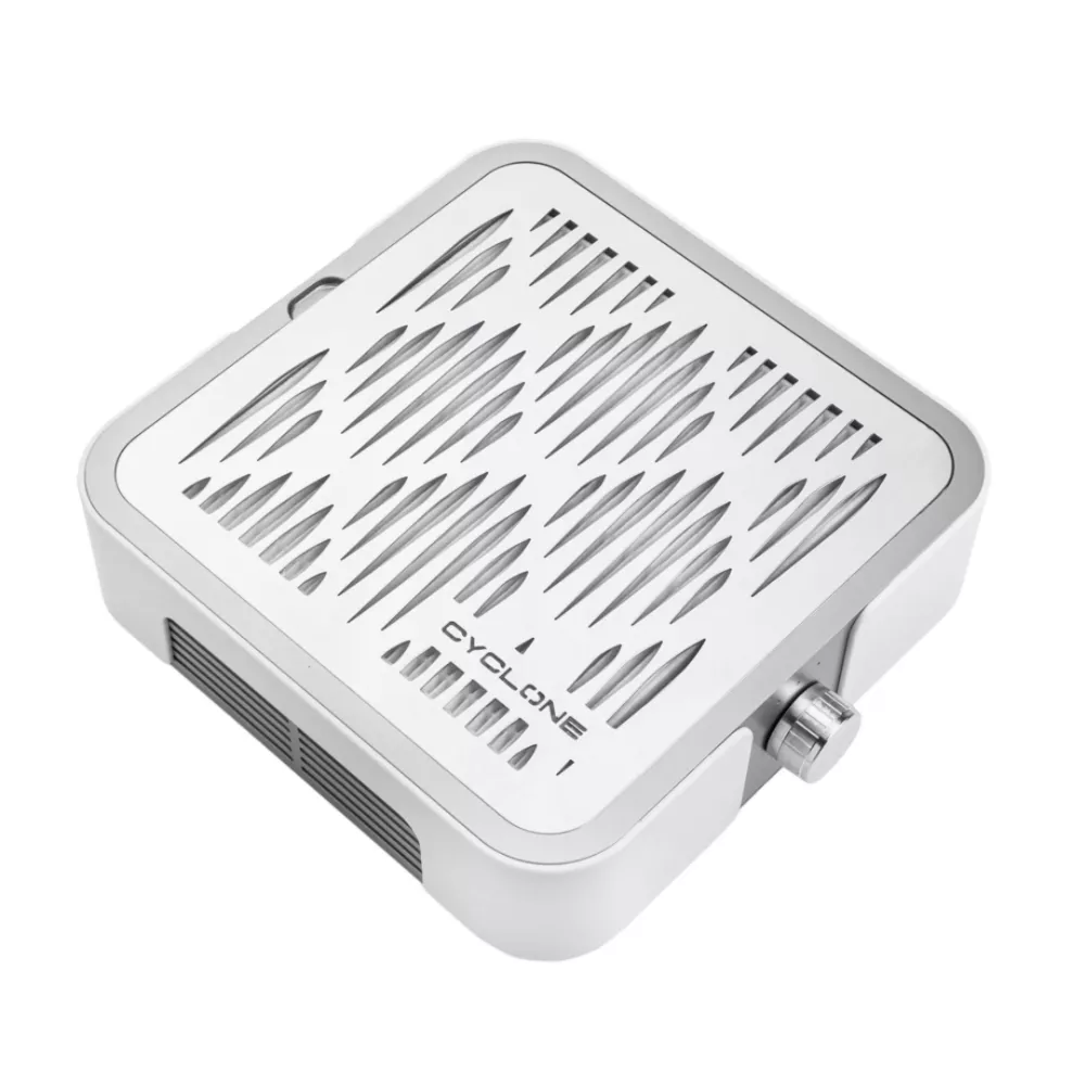 BUCOS CYCLONE X – це витяжка, яка підходить як для початківців, так і для досвідчених майстрів нарощування нігтів. Цей тихий і потужний пристрій з турборежимом та інноваційним HEPA-фільтром відмінно всмоктує дрібні частинки пилу під час нарощування та спилювання нігтів. Одноразові захисні серветки, які постачаються у комплекті, захищають фільтр від дрібного пилу та підвищують його ефективність. Корпус із ударостійкого пластику з накладкою з нержавіючої сталі легко чиститься і піддається дезінфекції. Протиковзкі ніжки забезпечують стабільне положення на робочому місці, мінімізуючи вібрації та шум. Для додаткових функцій, таких як освітлення або фрезер-ручка, є вбудований USB-порт. Довгий кабель дозволяє зручно розташовувати пилозбірник на робочому місці. Швидкість обертання вентилятора регулюється за допомогою ручки. Модель має сертифікат якості, що підтверджує її відповідність заявленим технічним характеристикам.