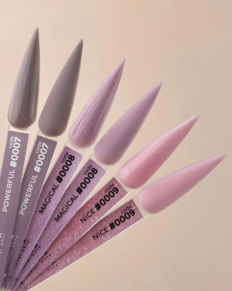 Універсальні камуфлюючі бази преміум якості. Ідеальна інноваційна формула в базах дозволяє гарно перекривати натуральну нігтьову пластину, добре просихають. Бази легко самовирівнюються та дуже комфортні в роботі, зменшують тривалість процедури. За консистенцією середньої густини (ближче до рідшої) та середньої твердості. Відмінно розподіляються по нігтьовій пластині та створюють бездоганний відблиск. Не дають усадки під час носіння. Мають добрі адгезивні властивості. Не розтікаються та забезпечують стійкість без відшарувань та сколів протягом 3-4 тижнів.